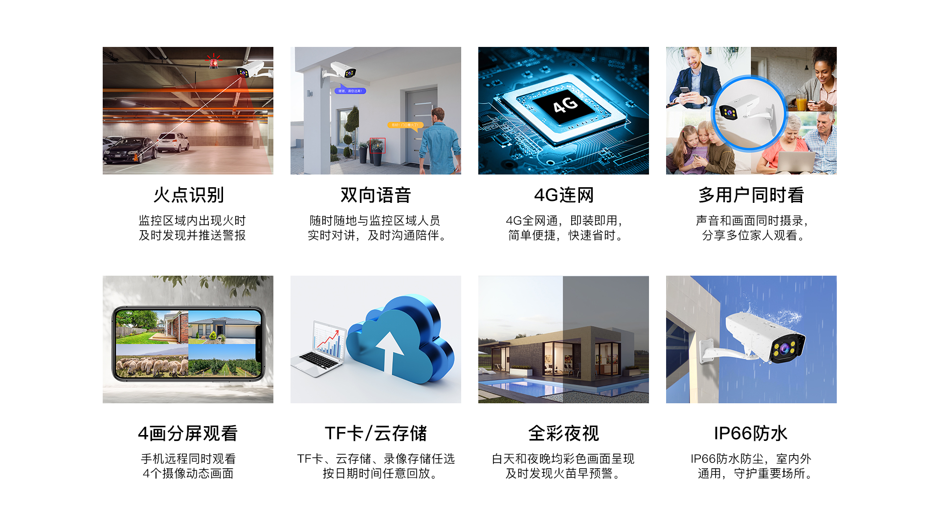 ✮AI功能:支持明火检测,烟雾检测,火点识别,烟雾、火焰框定 | ||