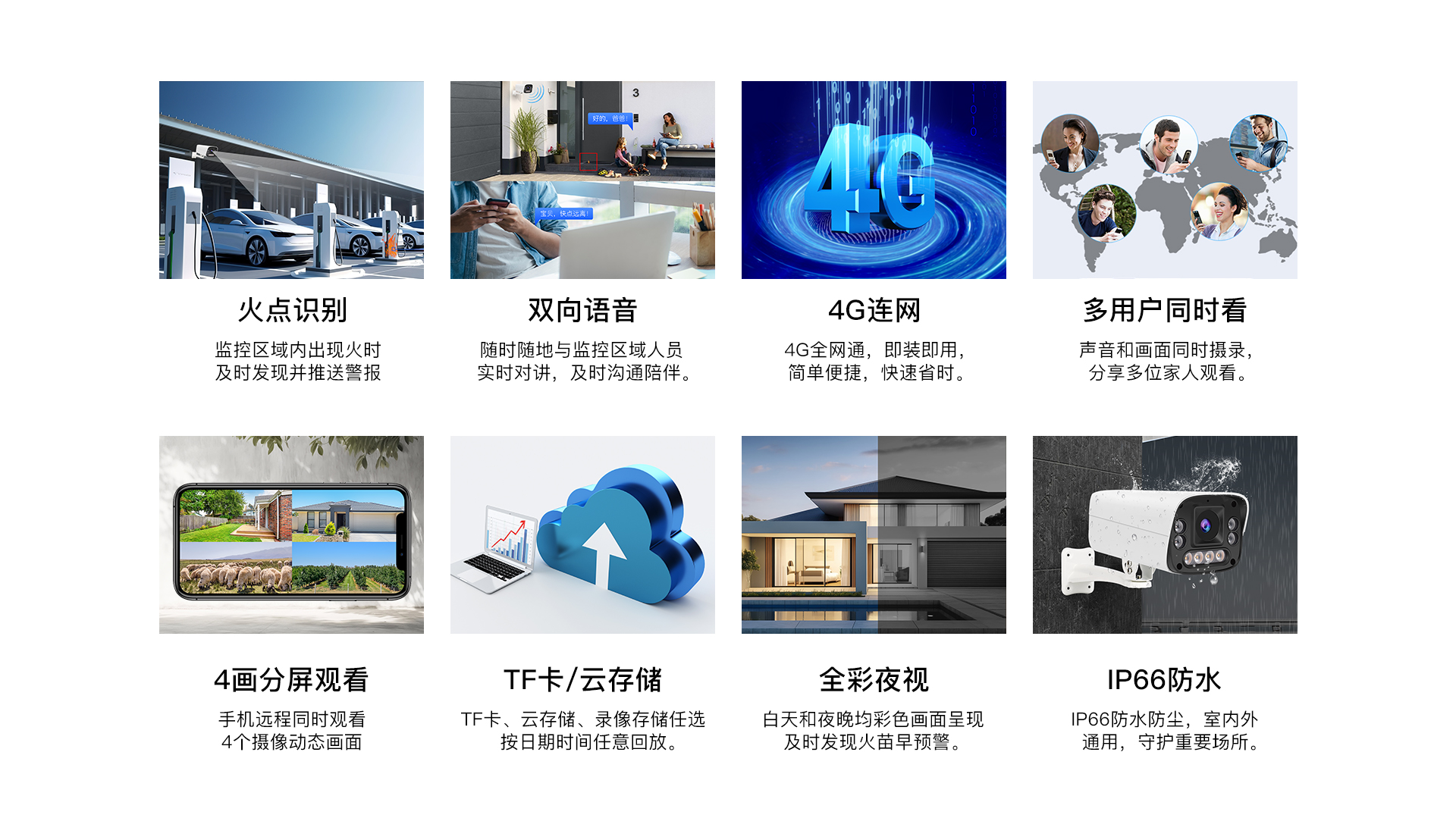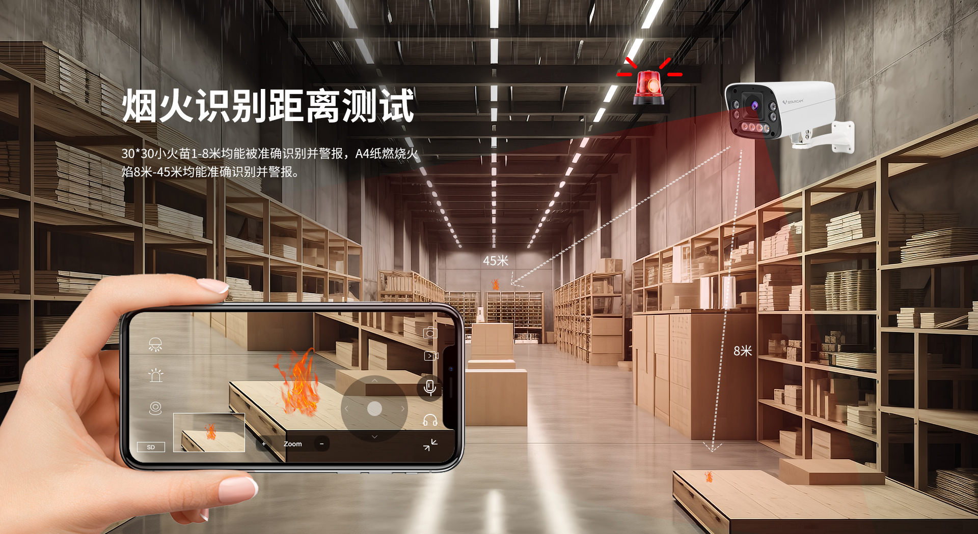 ✮AI功能:支持明火检测,烟雾检测,火点识别,烟雾、火焰框定 | ||