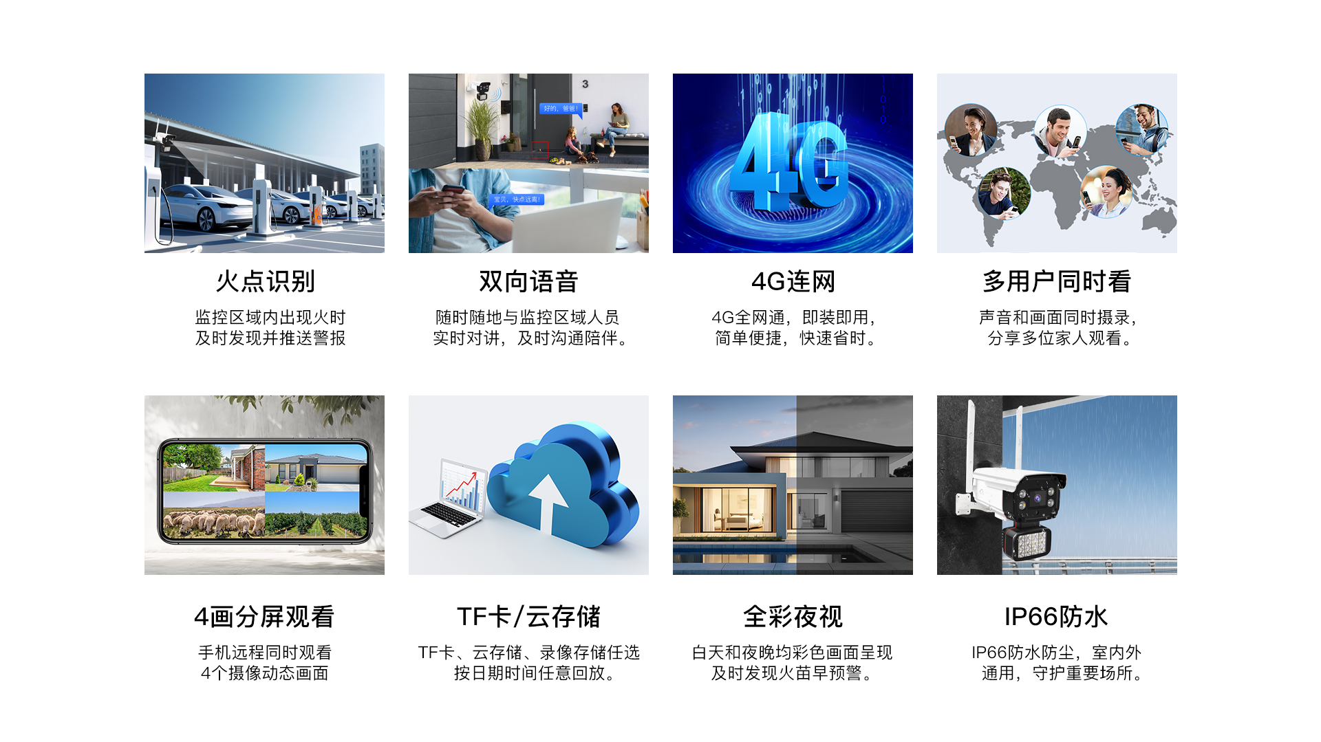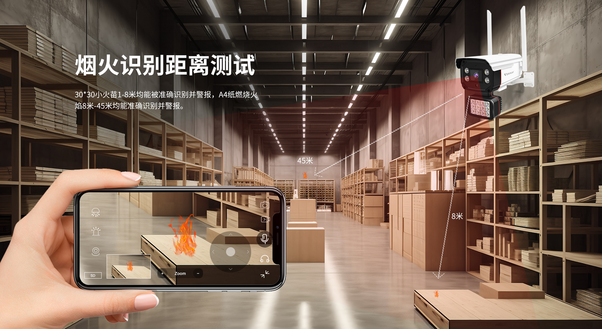 ✮AI功能:支持明火检测,烟雾检测,火点识别,烟雾、火焰框定 | ||