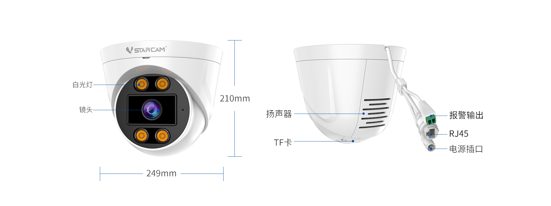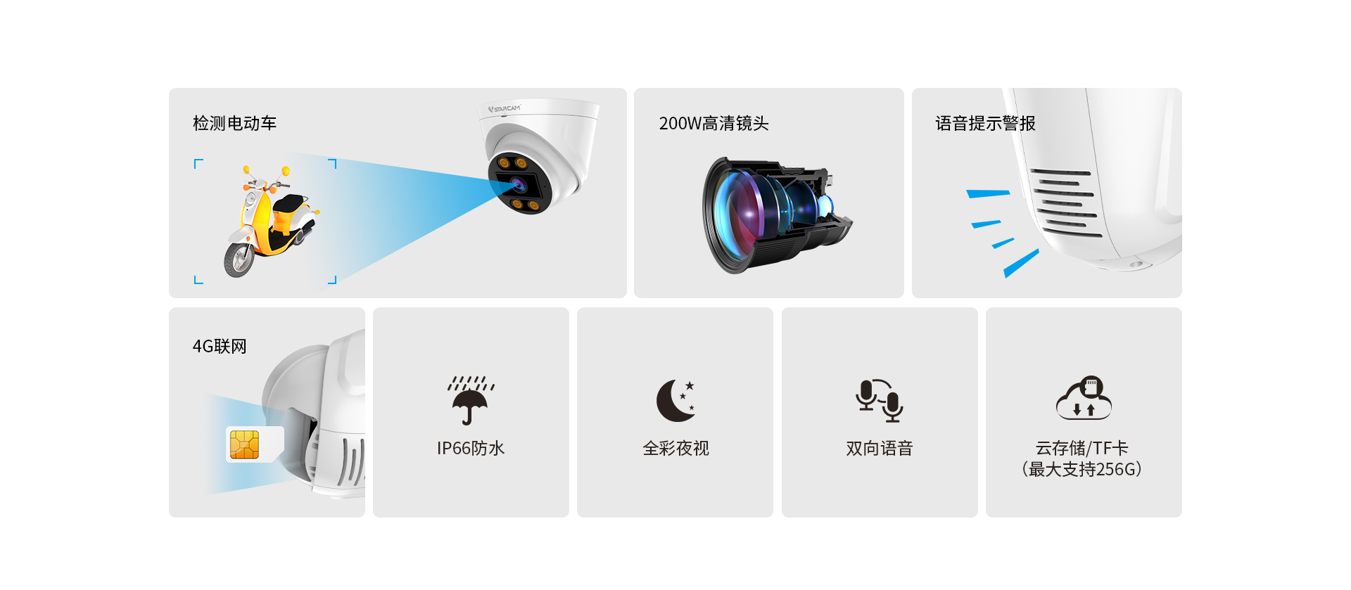 报警 | 报警检测 | 支持移动侦测,车辆检测,警笛报警音,区域侦测 |