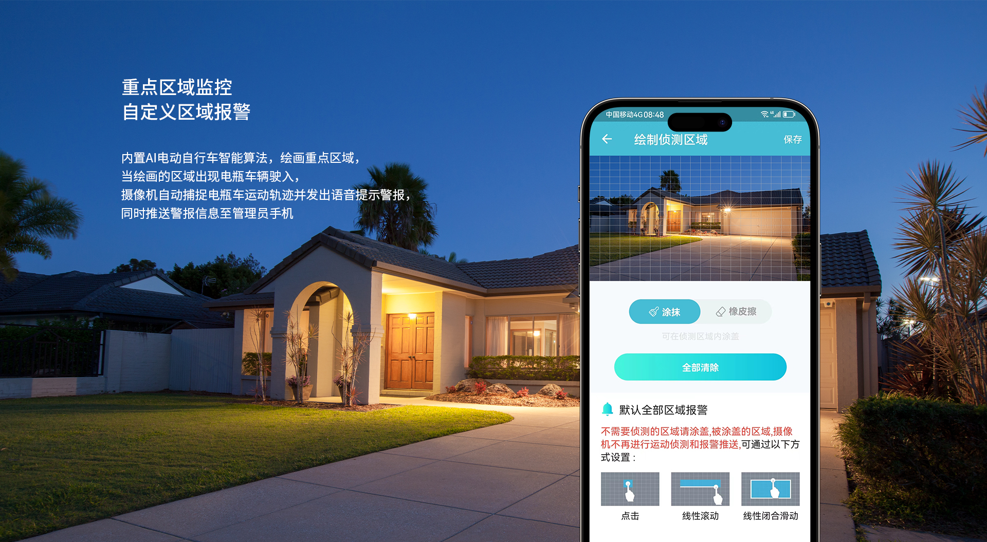区域检测 | 自由涂抹选取,只监控用户关心的区域 | |