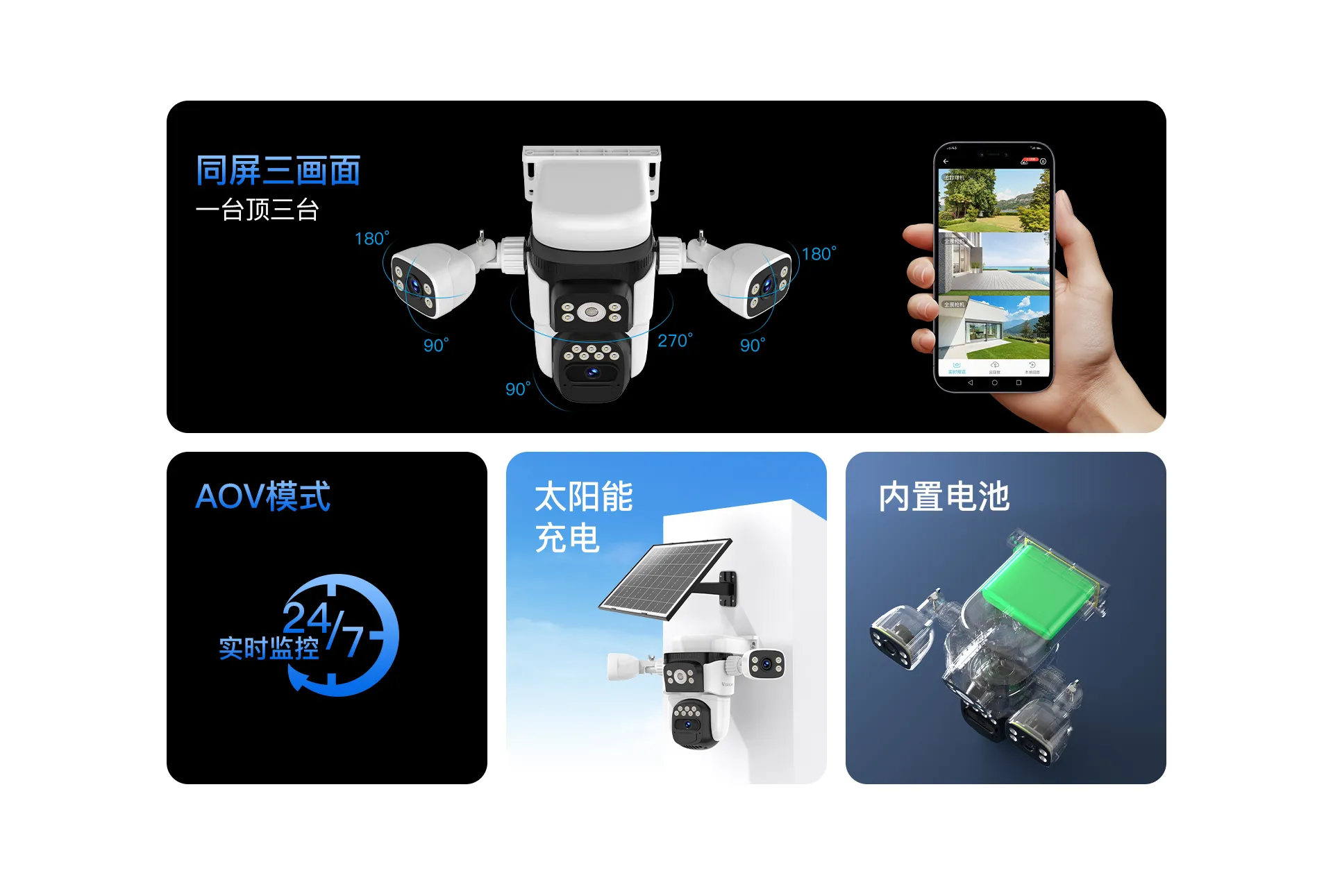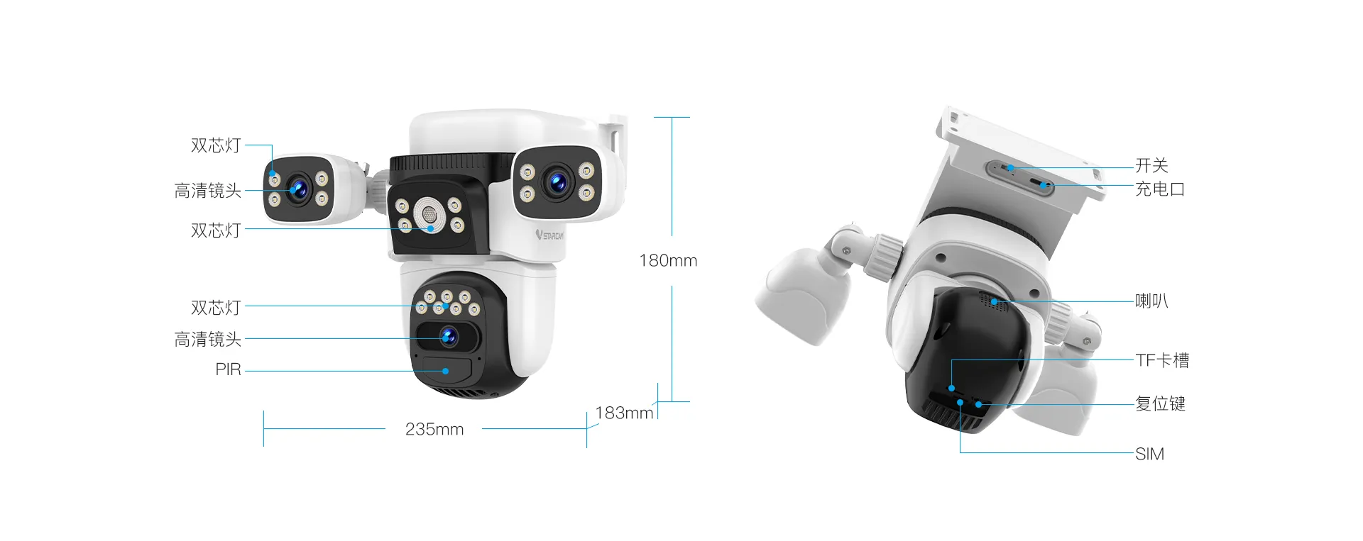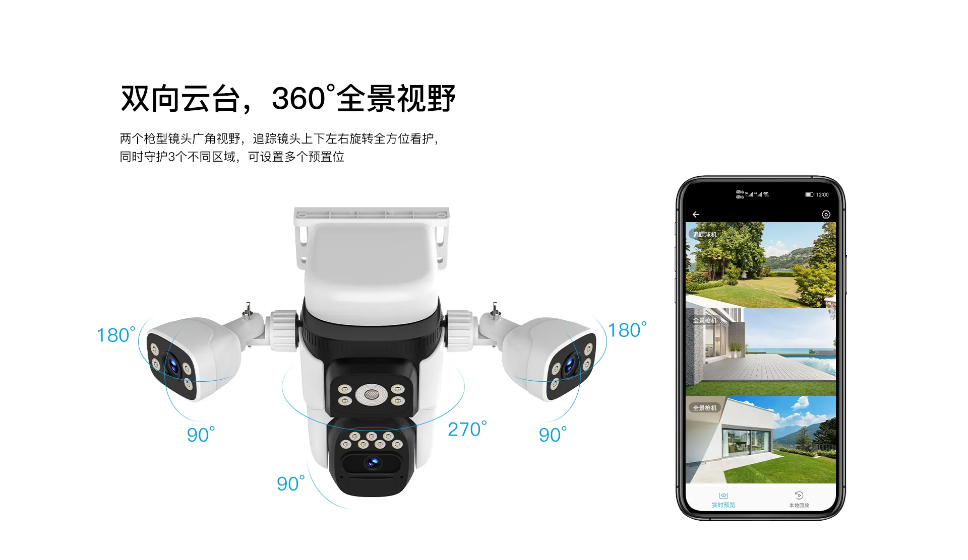 视频 | 夜视 | 全彩夜视,双光源,球机:7颗双色双光源,左边枪机:4颗双色双光源,右边枪机:4颗双色双光源,中间:5颗双色双光源 |