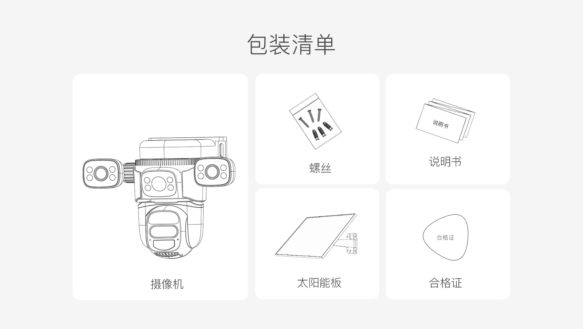 包装清单 | 主机*1,TYPE-C*1,说明书*1,太阳能板*1,太阳能板支架*1 |