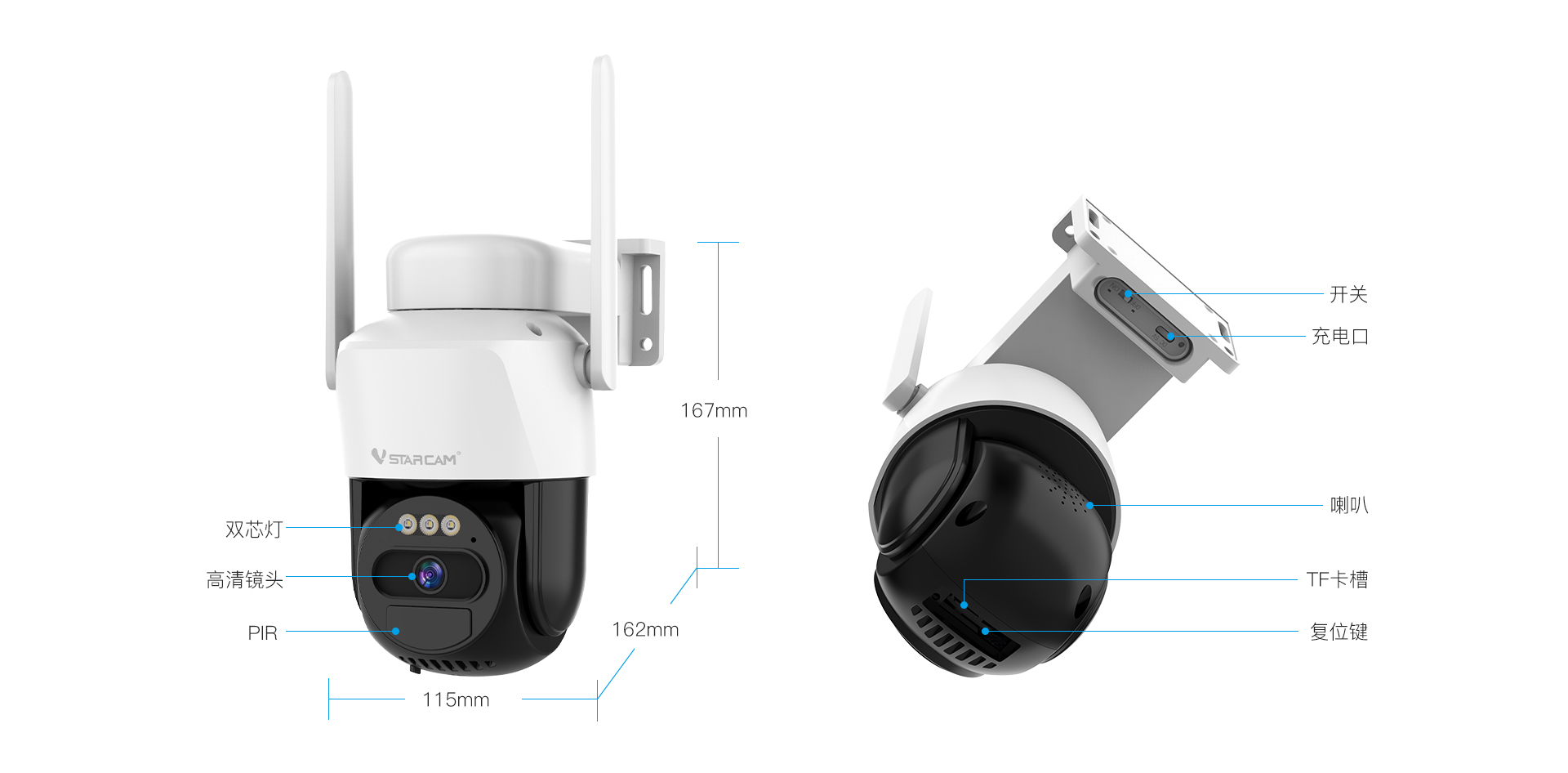 视频 | 夜视 | 全彩夜视,双光源,3颗双色双光源 |