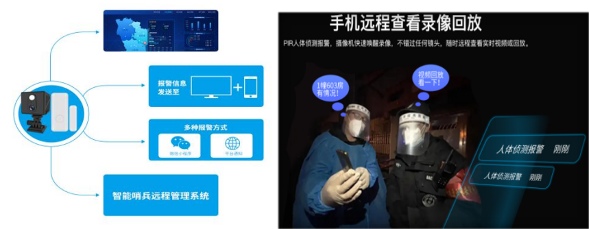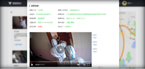 2. 减管理压力,实时警报。防疫人员无需频繁上门核查和追踪被隔离者行踪,更无须派专人值守。被隔离人员开门即推送警报信息,有门前录像依据,及时提醒防疫人员,提升管控工作效率的同时,减少与患者、潜在患者的接触频次,降低感染和传播风险,为防疫提供更多安全保障。