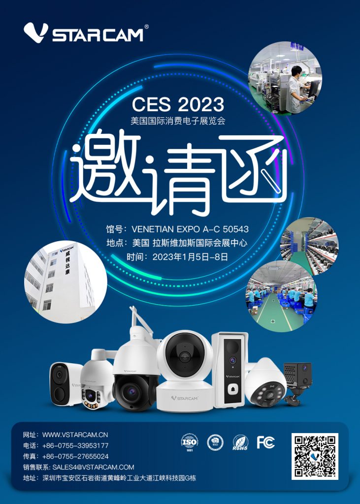 我们诚挚地邀请您和您的公司代表莅临展位参观、洽谈,让我们共同见证2023 CES Vstarcam的华丽蜕变。