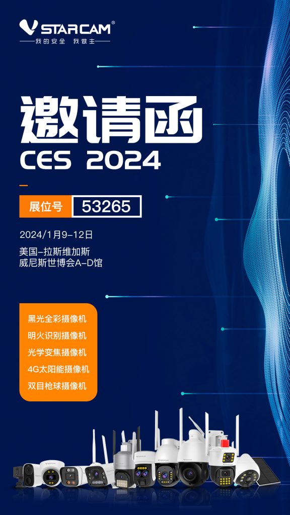 2024年1月9日-1月12日,华体会体育诚邀您莅临美国拉斯维加斯国际消费类电子产品展览会,华体会体育展位号:威尼斯世博会A-D馆 53265,现场体验一系列令人惊叹的科技新品:黑光全彩摄像机、明火识别摄像机、光学变焦摄像机、4G太阳能摄像机和双目枪球摄像机等,这些产品将涵盖各个领域,并在全球范围内进行展示和销售。