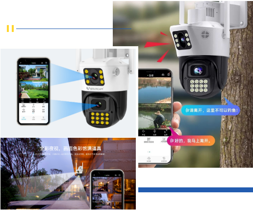 双镜头摄像机呈现双画面清晰场景,一台摄像头看护两个不同区域,节省部署时间和成本,巨便捷。