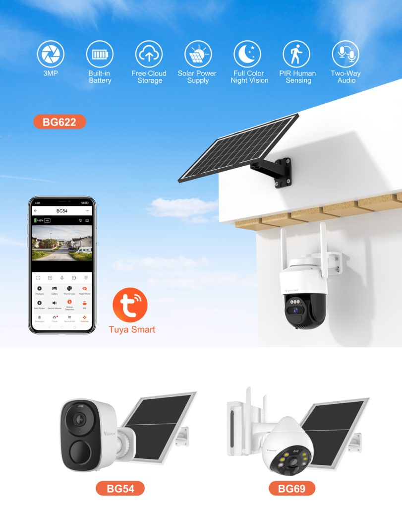 太阳能低功耗摄像机、Wi-Fi/4G摄像机、迷你摄像机、多镜头摄像机、全彩语音摄像机以及烟火摄像机等。