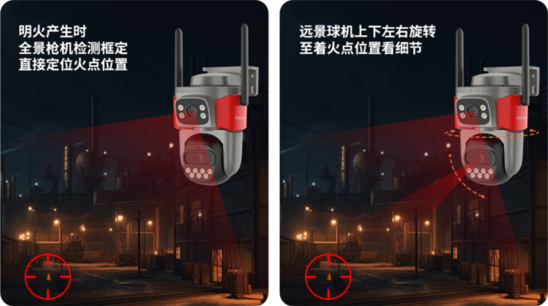 双画面实时监控,支持AI人形追踪与移动侦测,通过IP66防水防尘设计,暴雨环境下仍可全天候稳定工作,适用于工地雷雨天气安全监控。