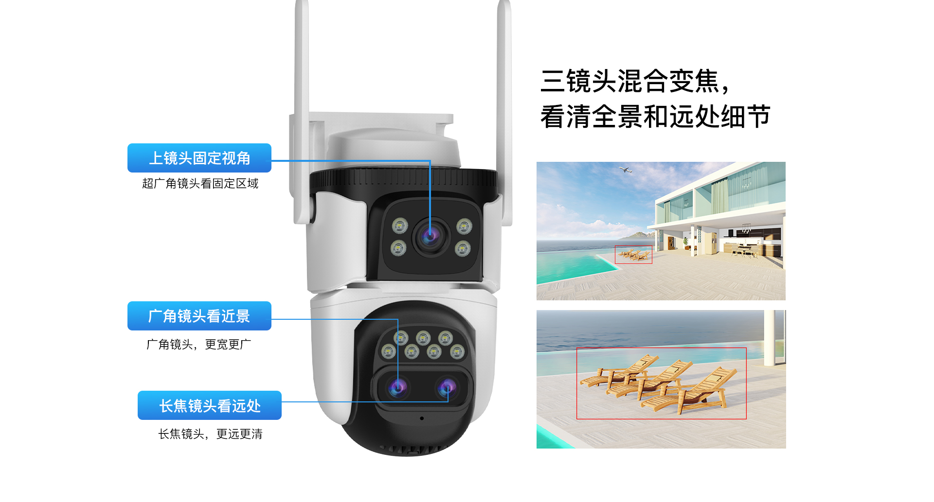别墅庭院安全: 实时监控庭院动态,防止物品丢失,守护庭院安全。