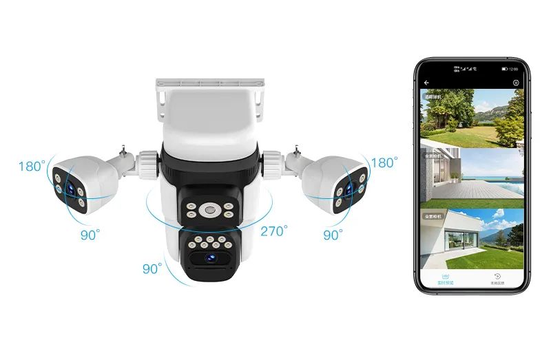 CS621DR/CS621SR/CS621ZR多镜头摄像机搭载双云台旋转设计,360°多角度监控,轻松覆盖房屋周边、景区入口、停车场等复杂区域。