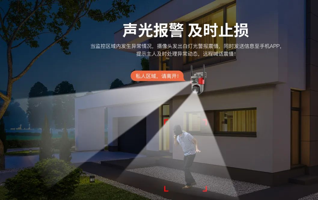 家庭安防:风雨无阻守护庭院安全,双向语音远程互动。