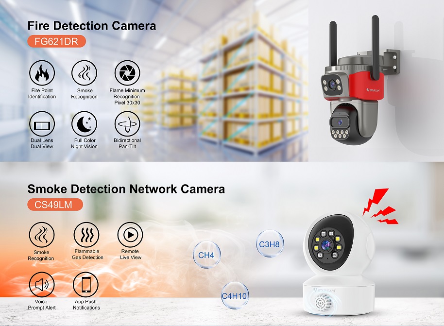 针对火灾高风险的重要场景,华体会体育展出的烟火警报摄像机(FG621DR/AF621DR)搭载AI明火识别算法,可实时捕捉火苗火点并触发声光警报,同步推送信息至管理平台,有效降低火灾隐患。