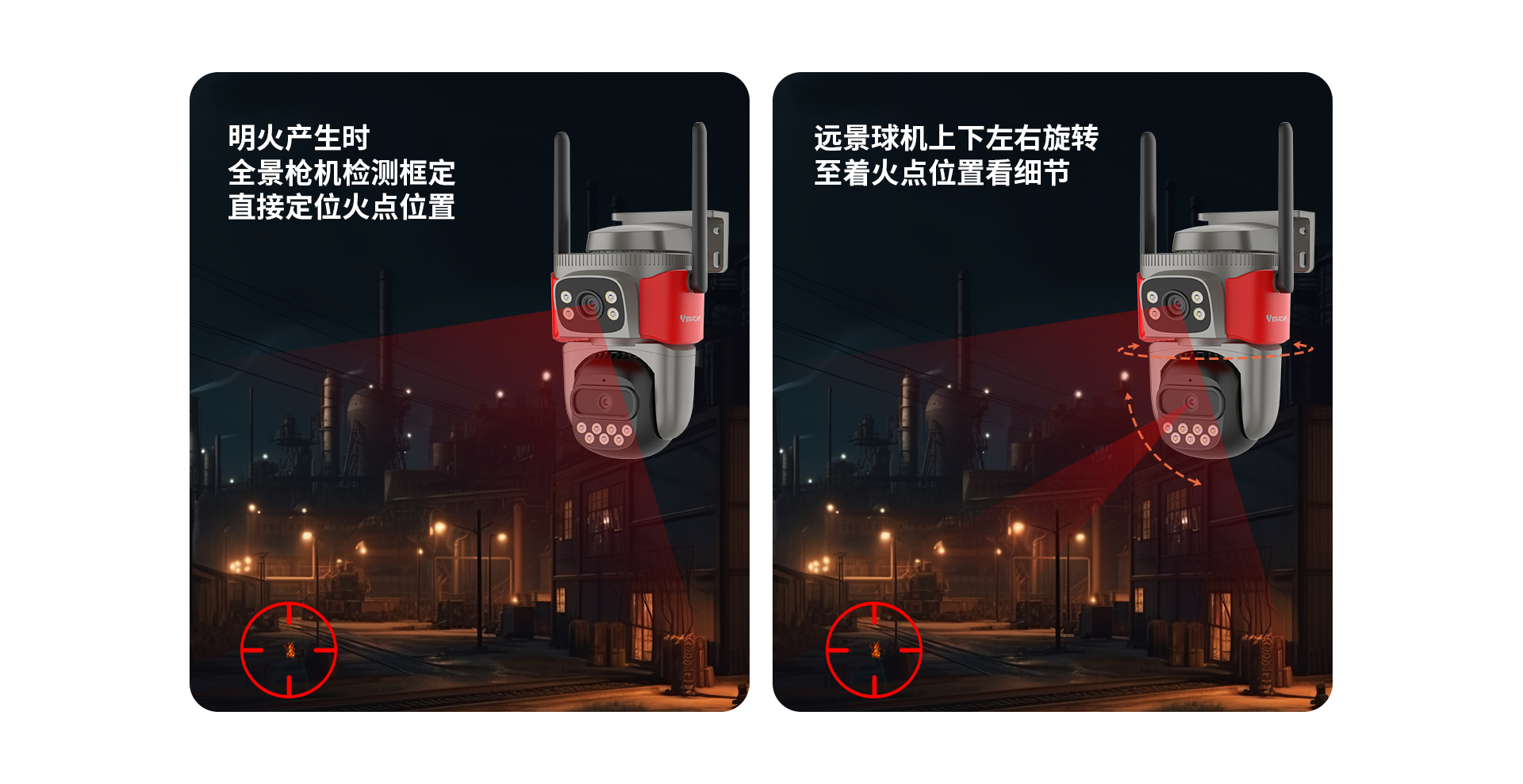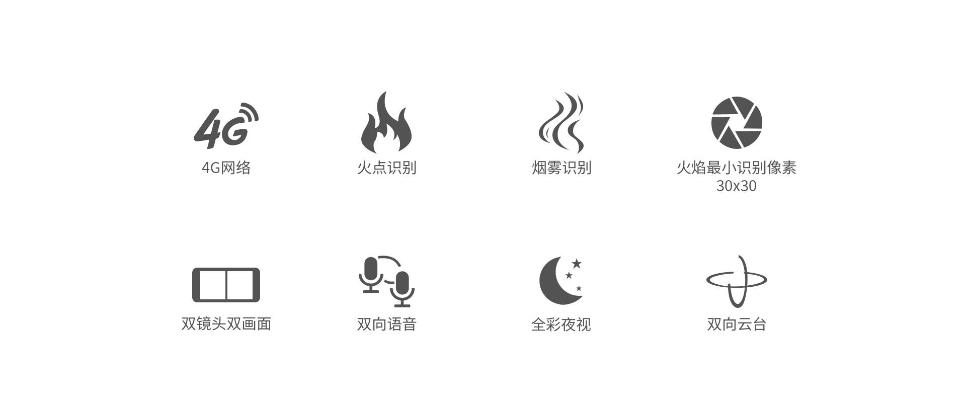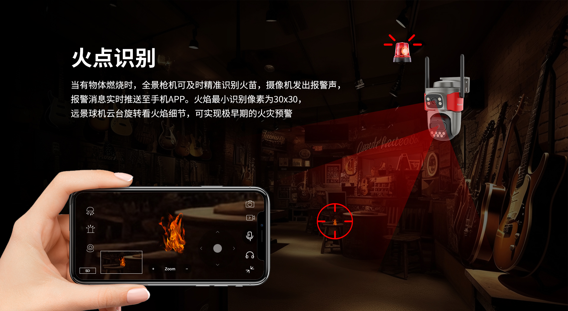 报警 | 报警检测 | 支持火焰检测,移动侦测,警笛报警音,区域侦测 |