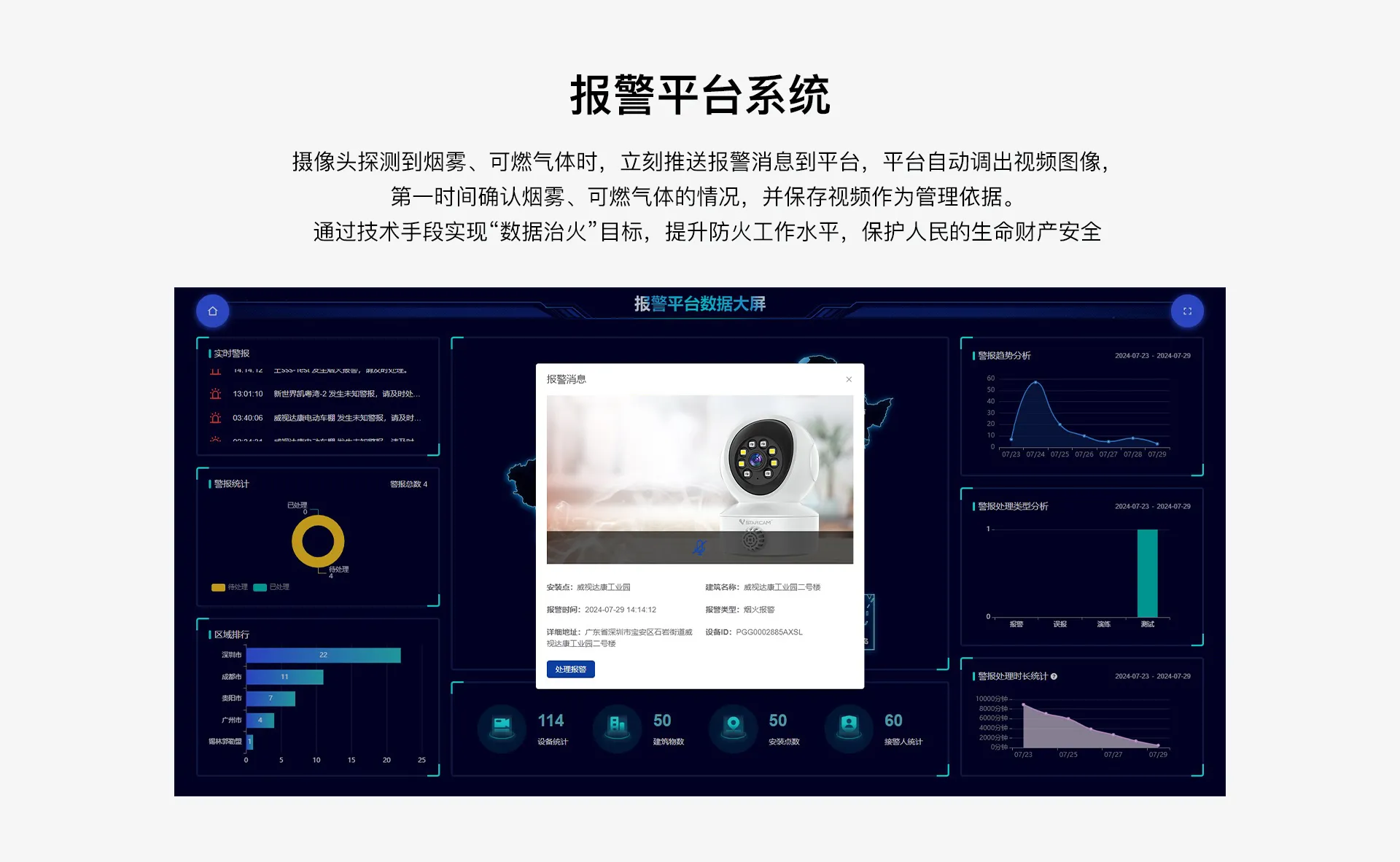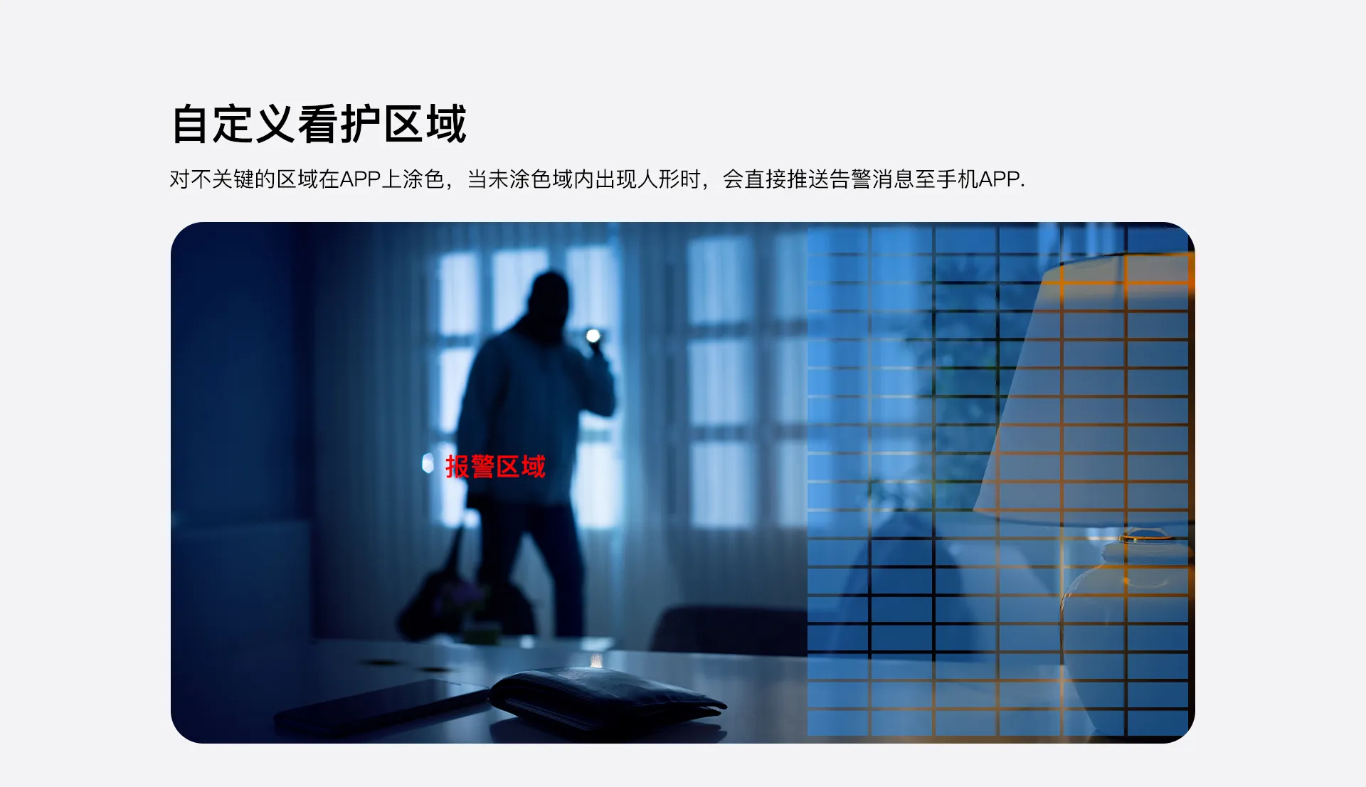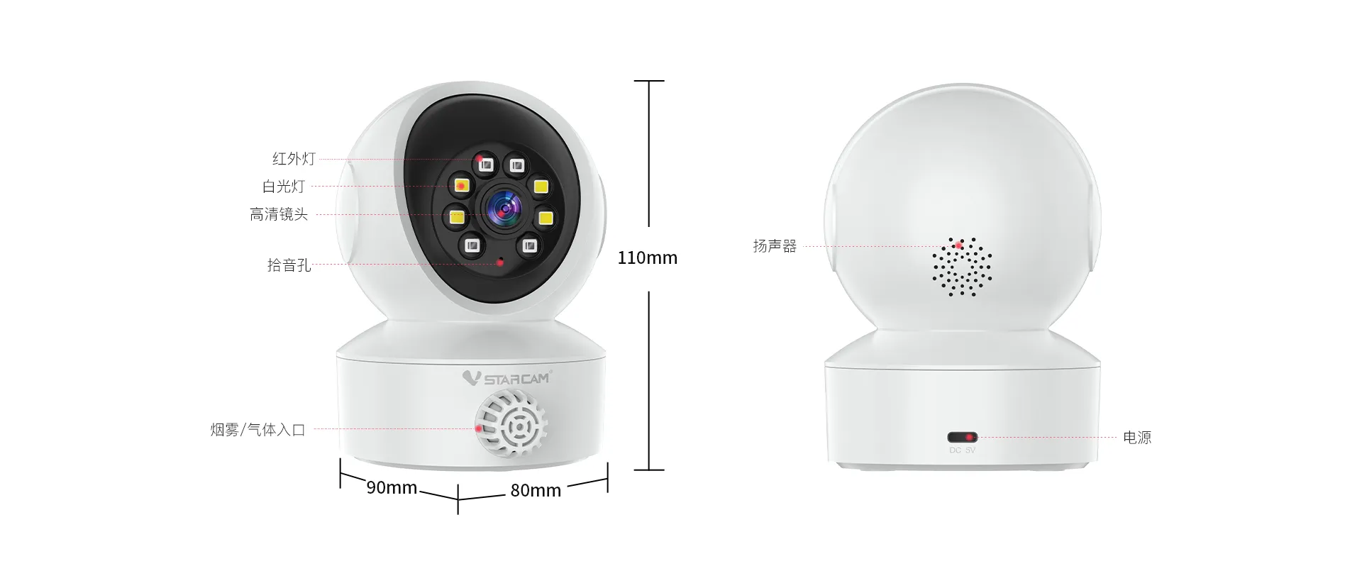 报警 | 报警检测 | 支持烟雾探测、可燃气检测、移动侦测,人形侦测,人形框定,区域侦测,人形追踪 |