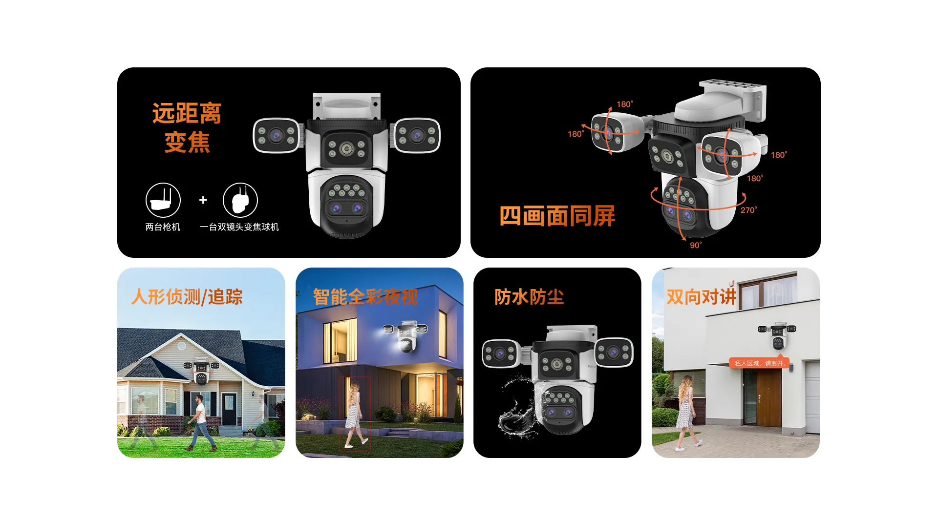 ✮四镜头球机双镜头混合变焦,支持超远距离变焦 | ||