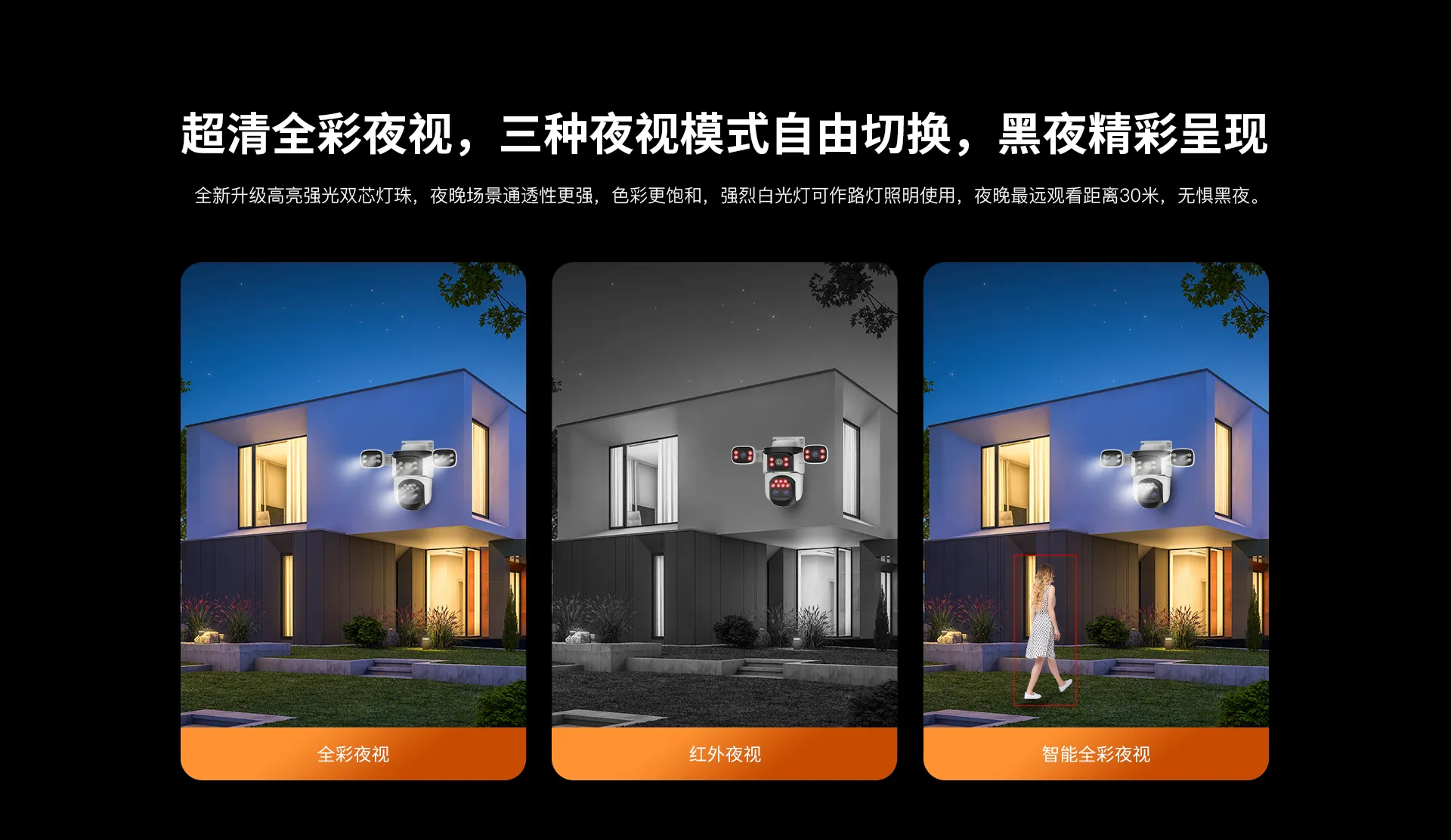 报警 | 报警检测 | 支持移动侦测,人形侦测,人形框定,区域侦测,人形追踪,警笛声报警 |