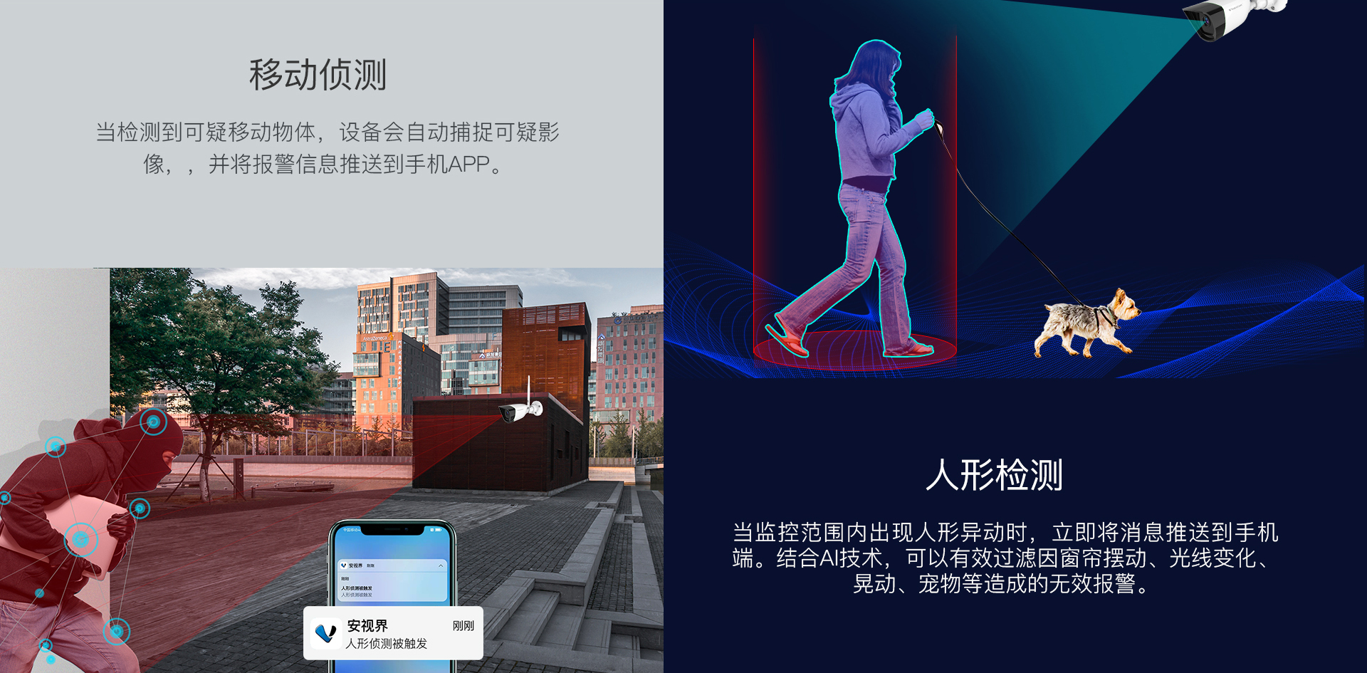 | ✮人体移动智能侦测,智能报警推送 | ||