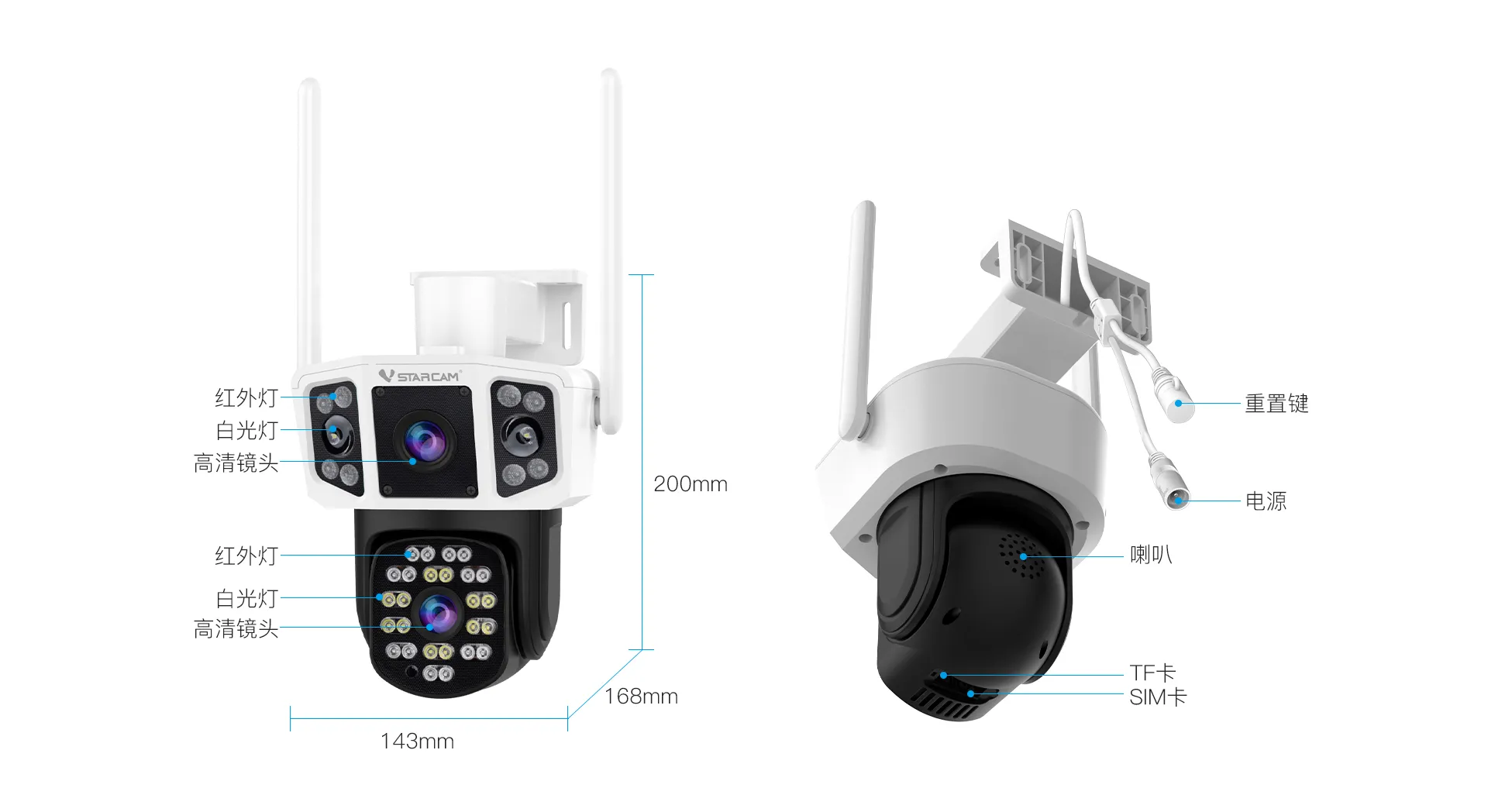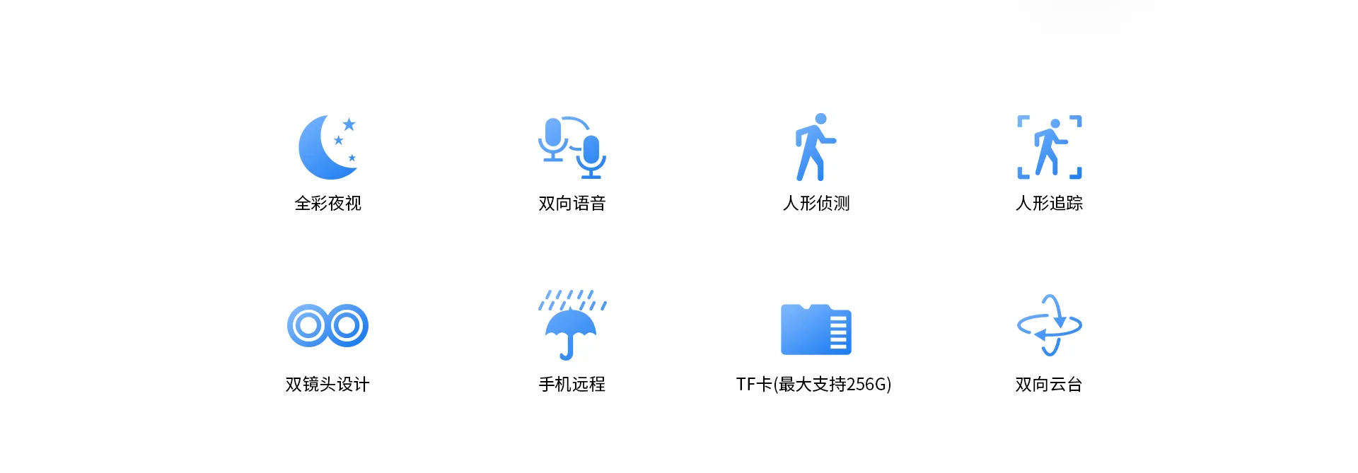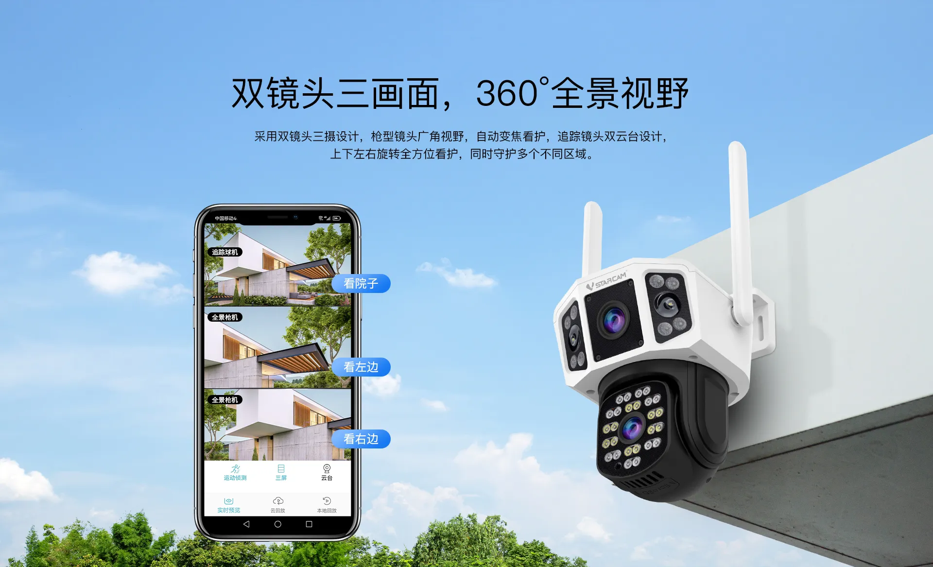 支持移动侦测,人形侦测,人形框定,区域侦测,警笛声报警 |
