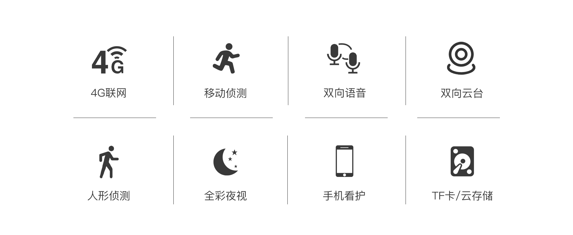 | 报警 | 报警检测 | 支持移动侦测,人形侦测,人形框定,区域侦测,人形追踪 |