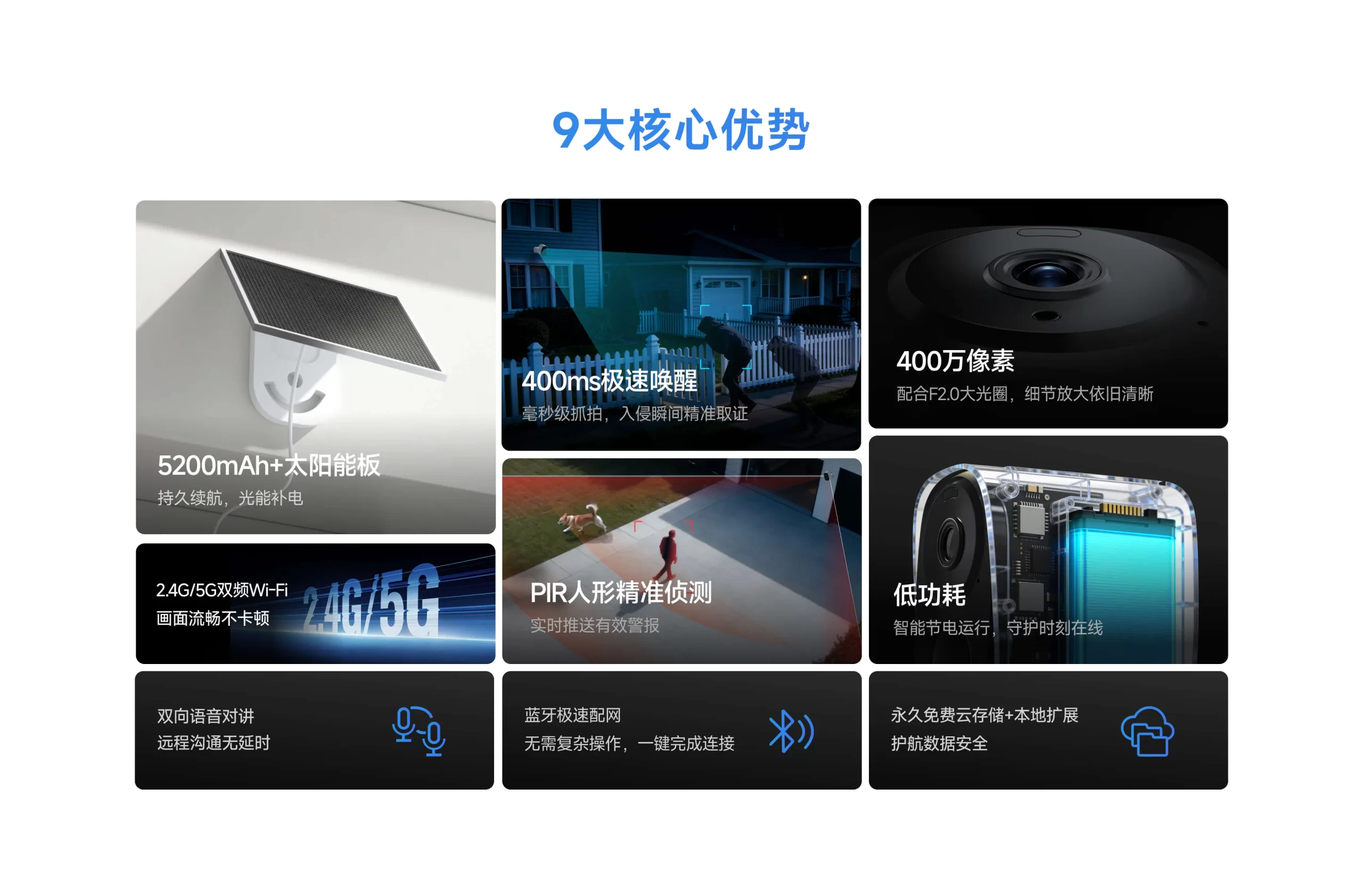 | ✮支持外接3W/5W太阳能板,持续输送供电,设备不断电 |