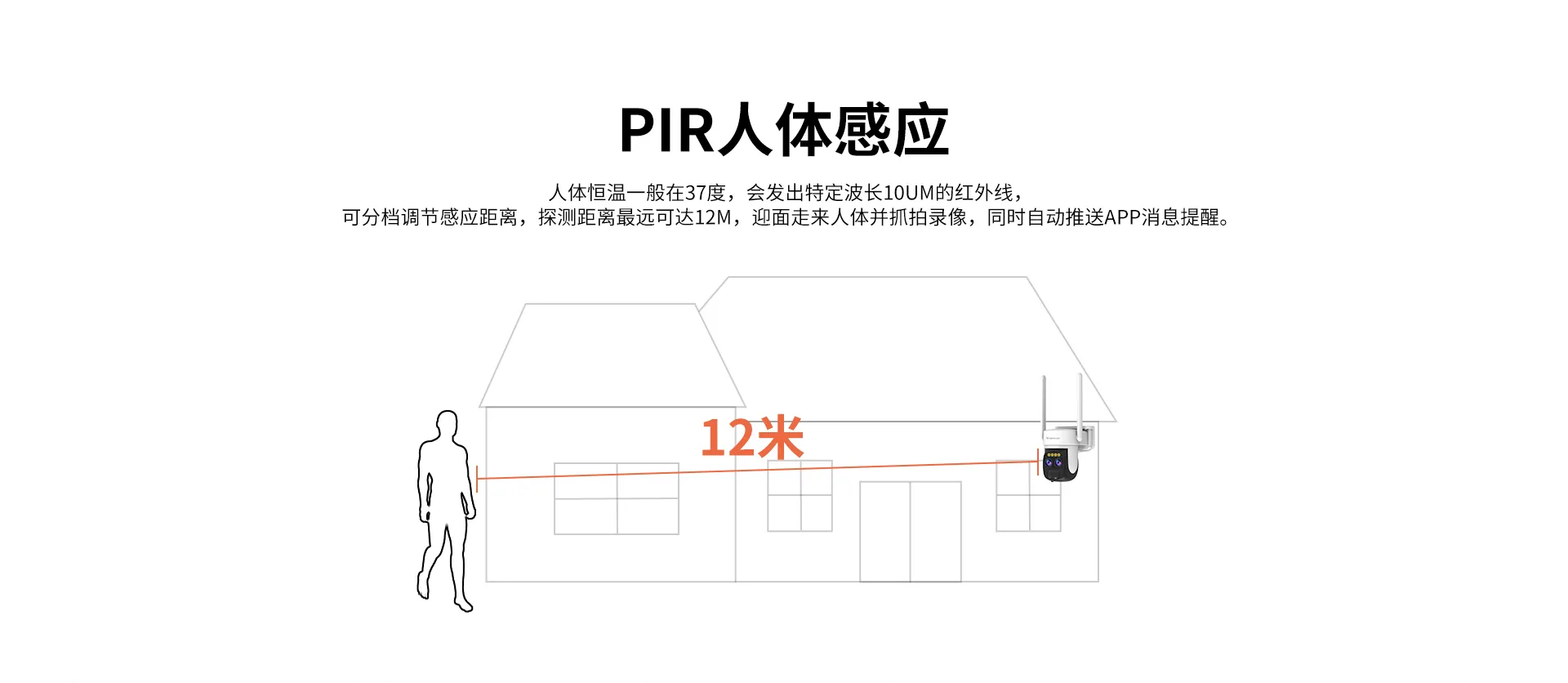 | 报警 | 报警检测 | PIR人体侦测/人形侦测,可分档调节距离,探测距离最远可达15M |