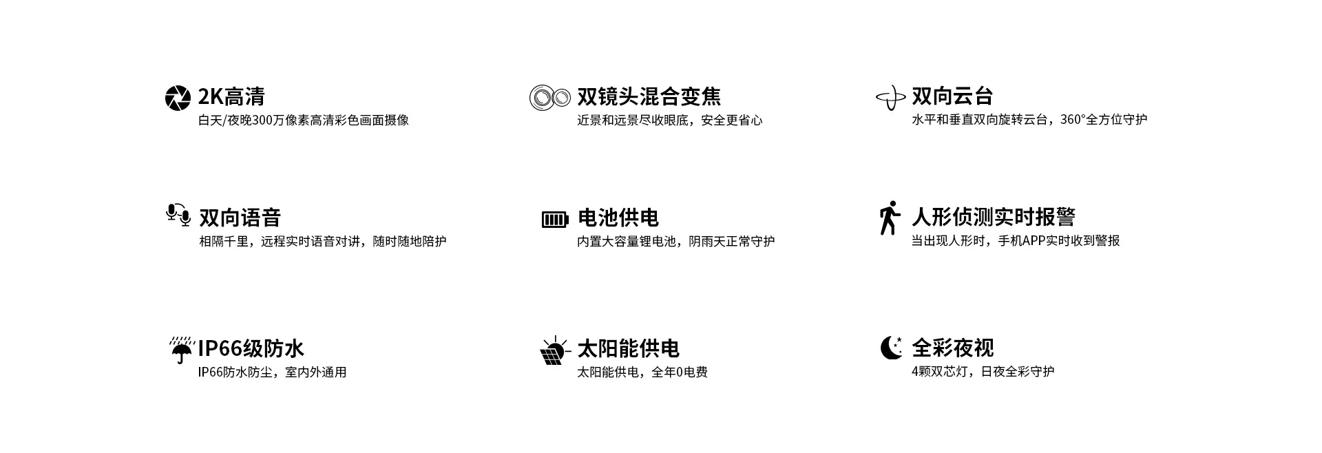 | 夜视 | 全彩夜视/黑白夜视/智能夜视 | |