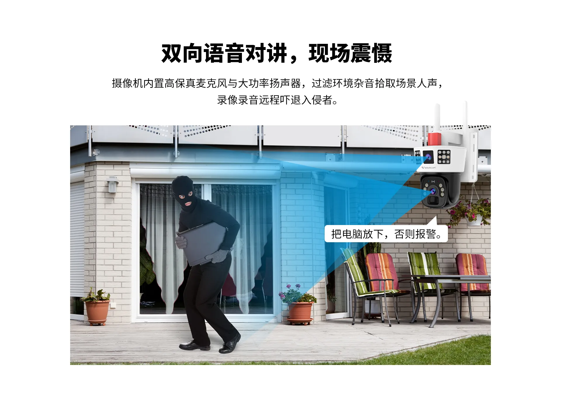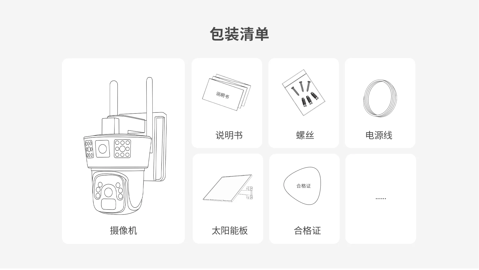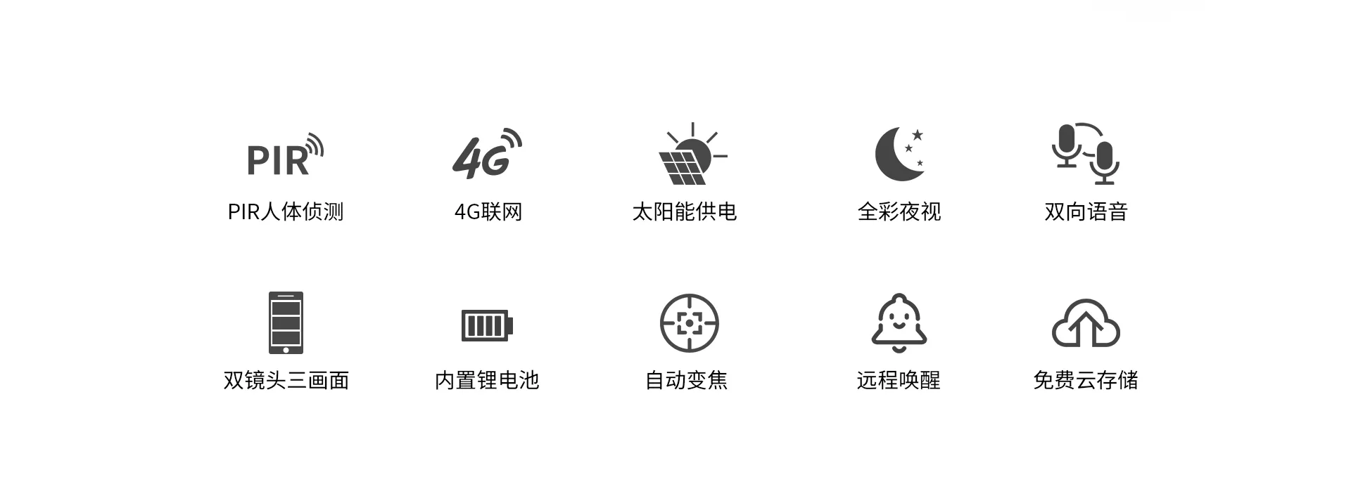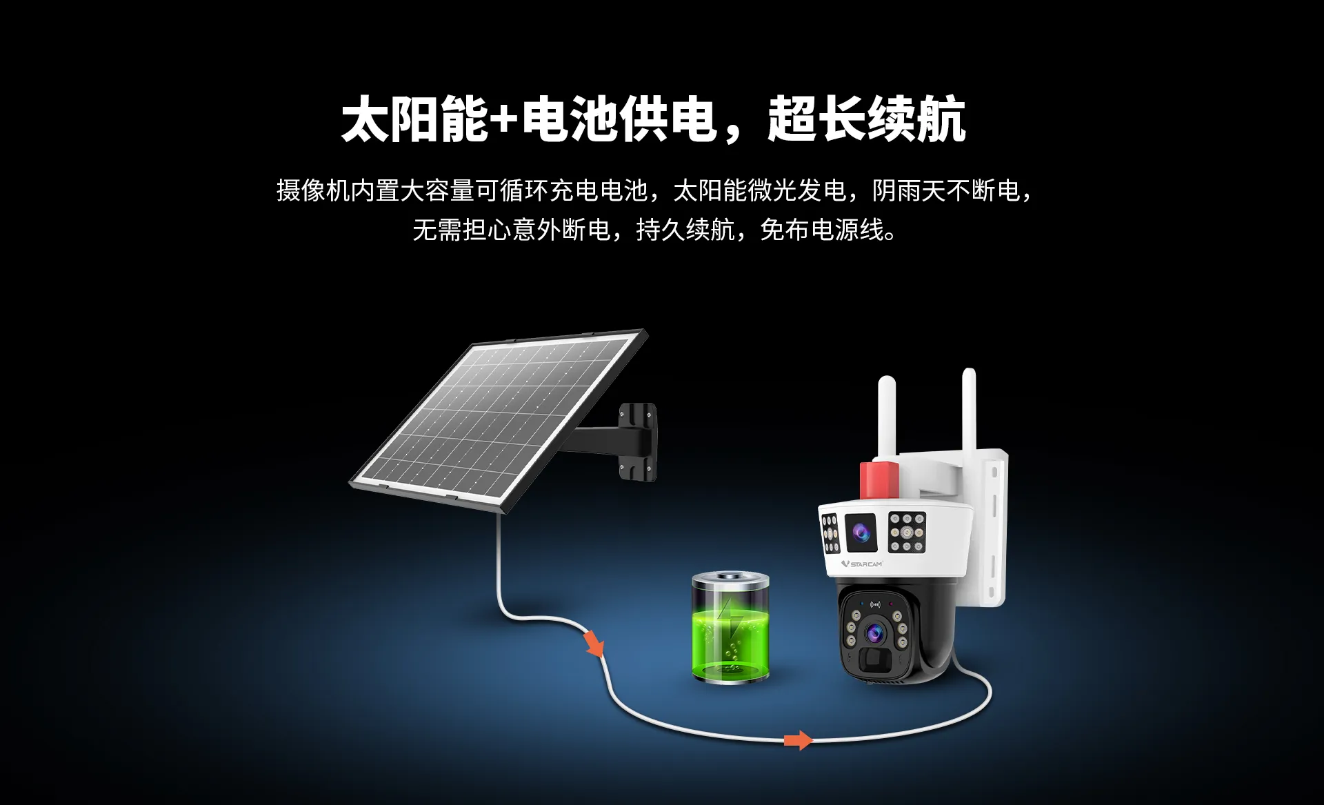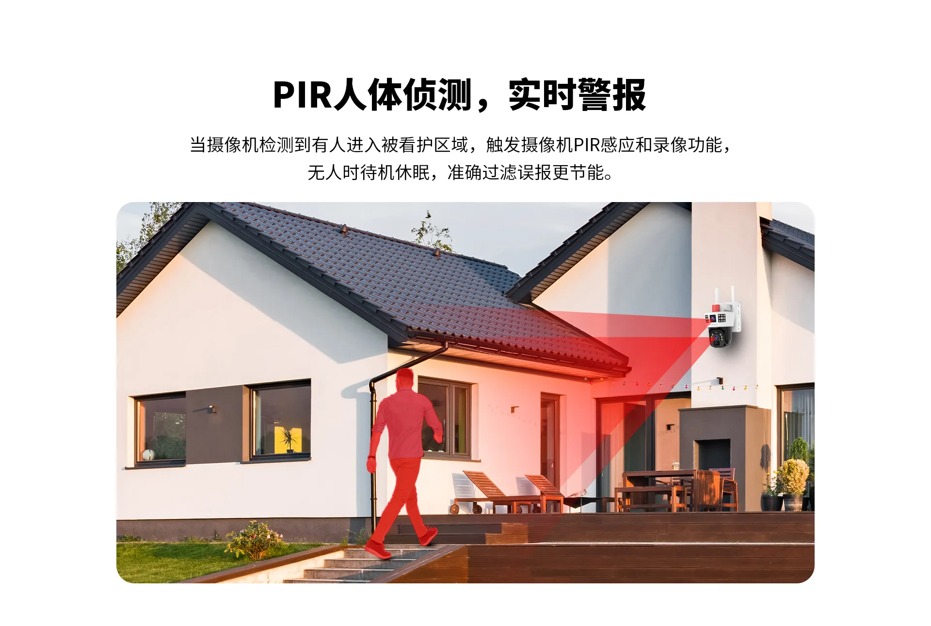 | 报警检测 | 支持人体移动侦测,PIR红外人体检测10米 | 供电 | 自带8000mAh电池供电 | |||