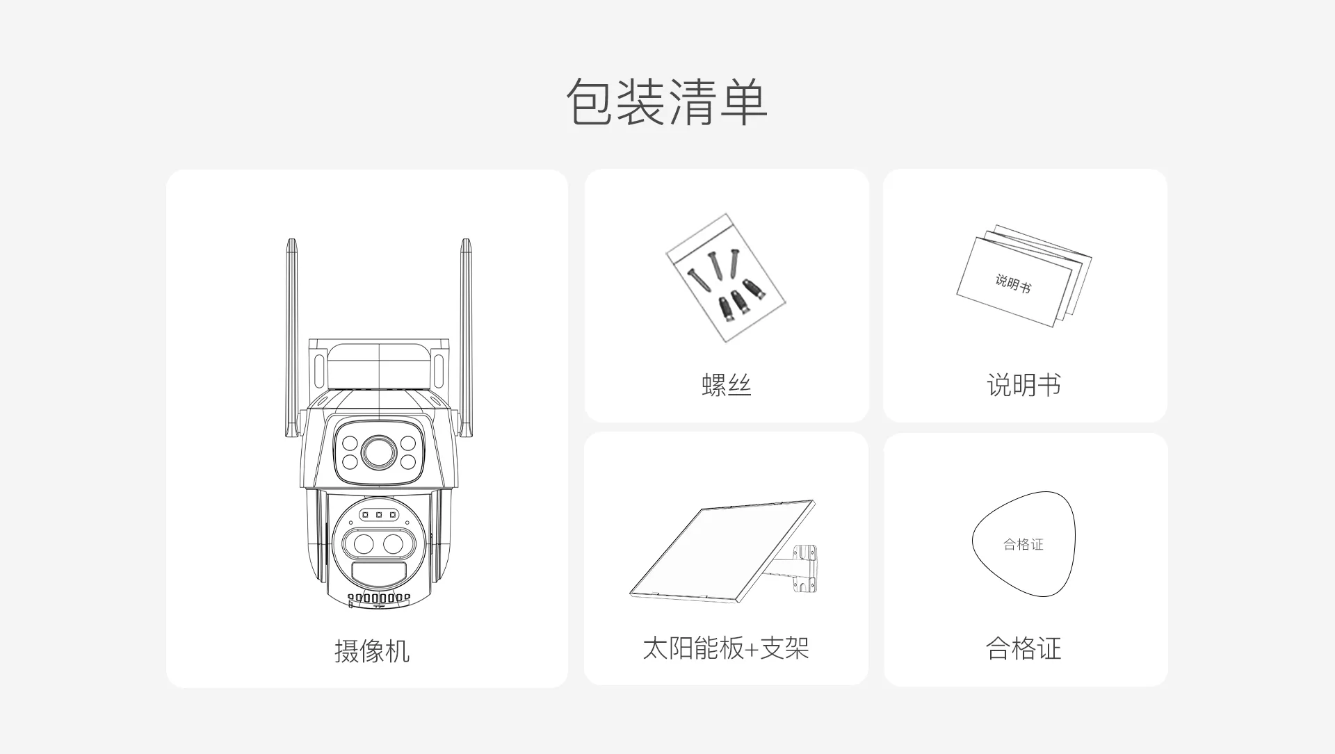 主机*1,说明书*1,太阳能板*1,太阳能板支架*1 |