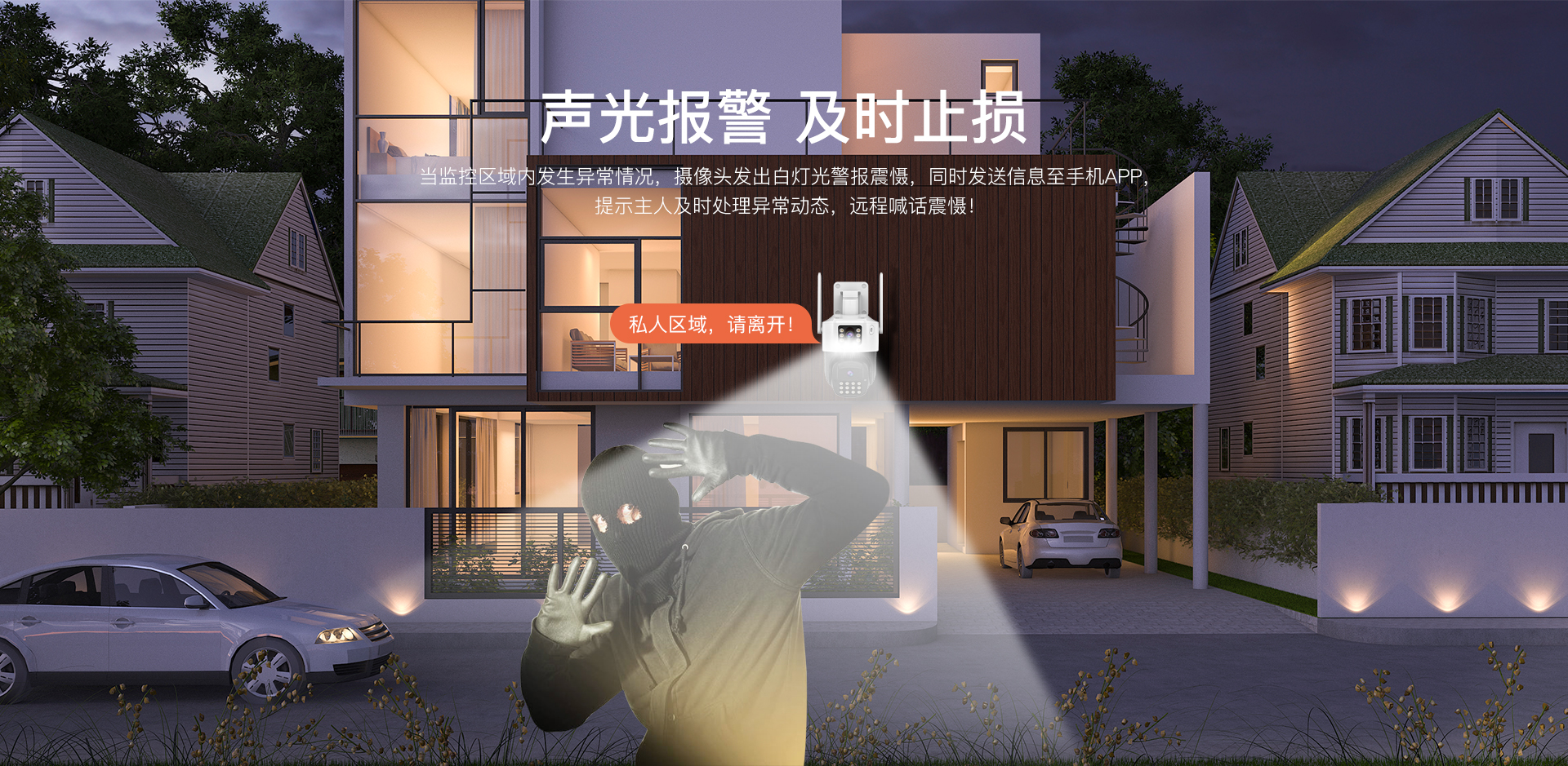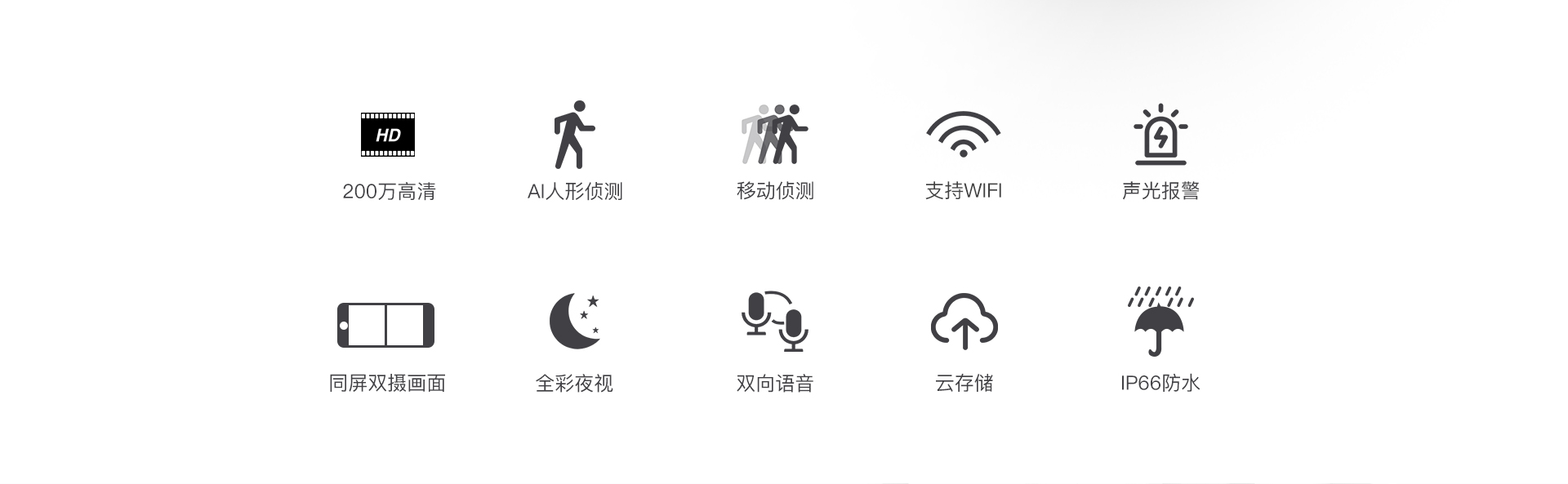 支持移动侦测,人形侦测,人形框定,区域侦测,警笛声报警 |