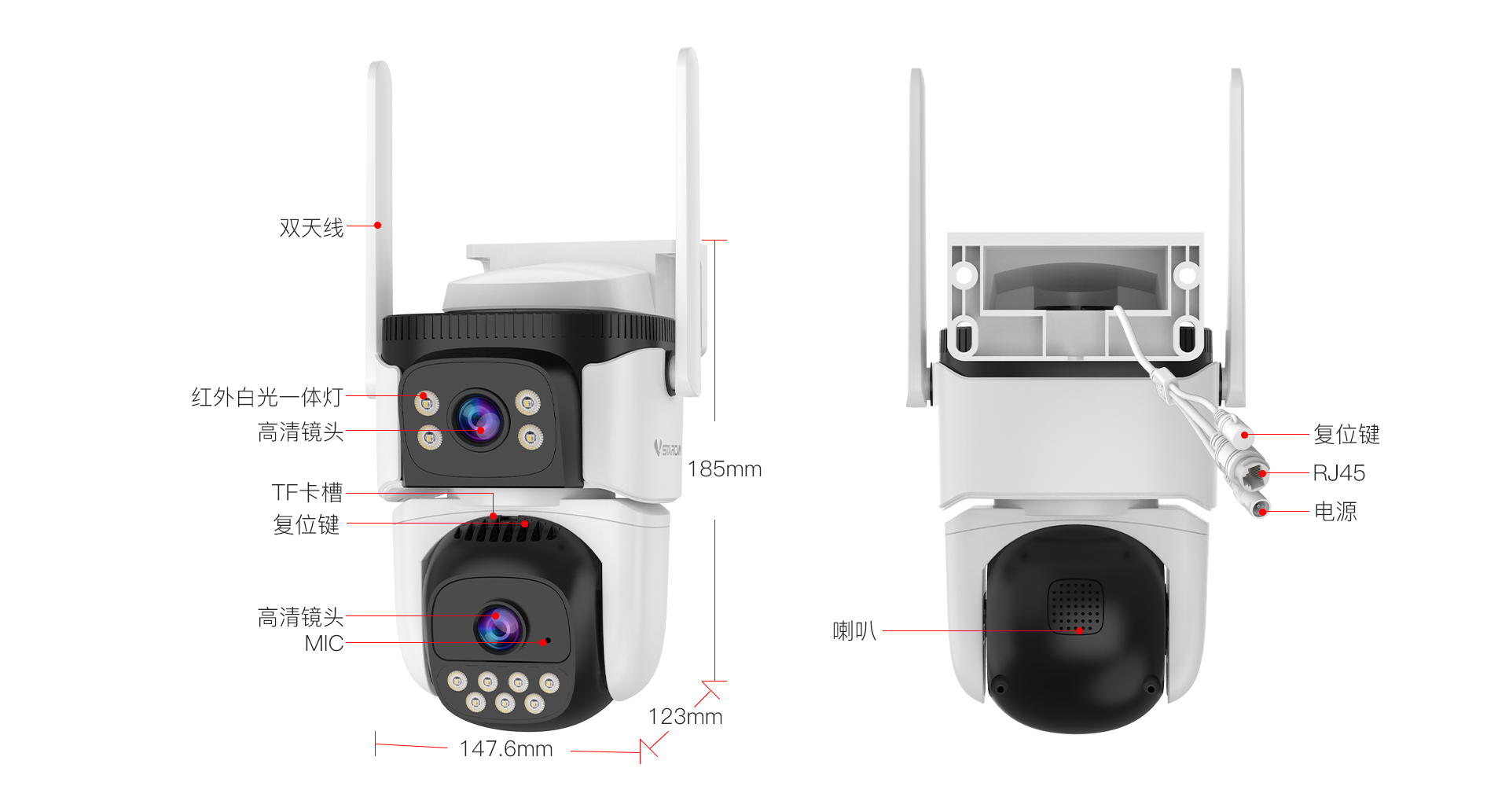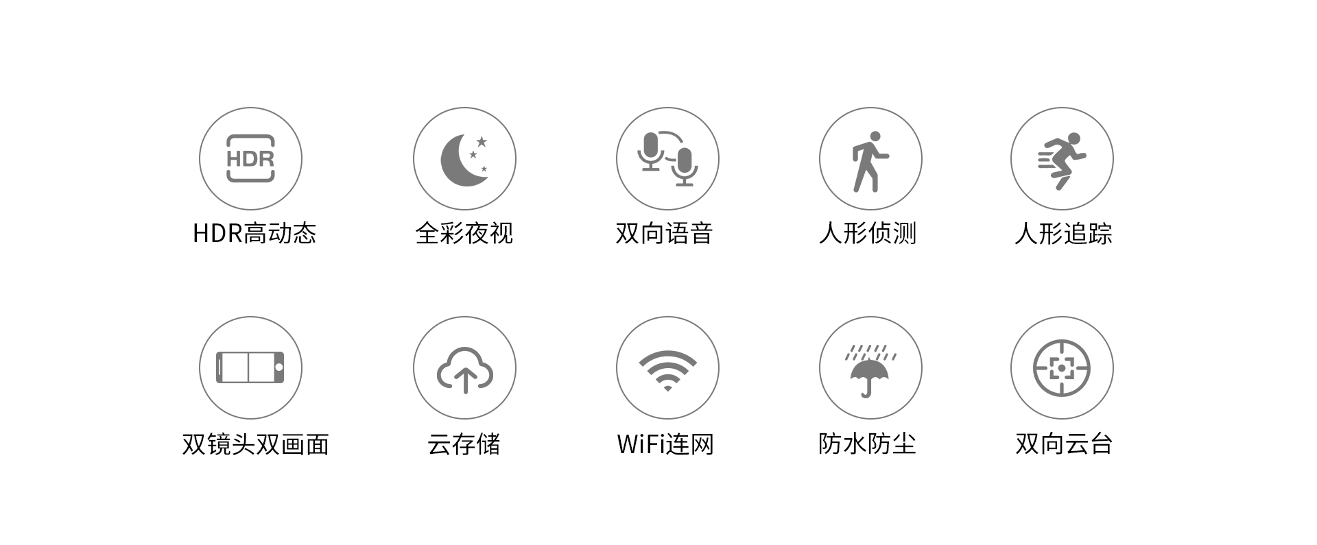 支持移动侦测,人形侦测,人形框定,区域侦测,警笛声报警 |