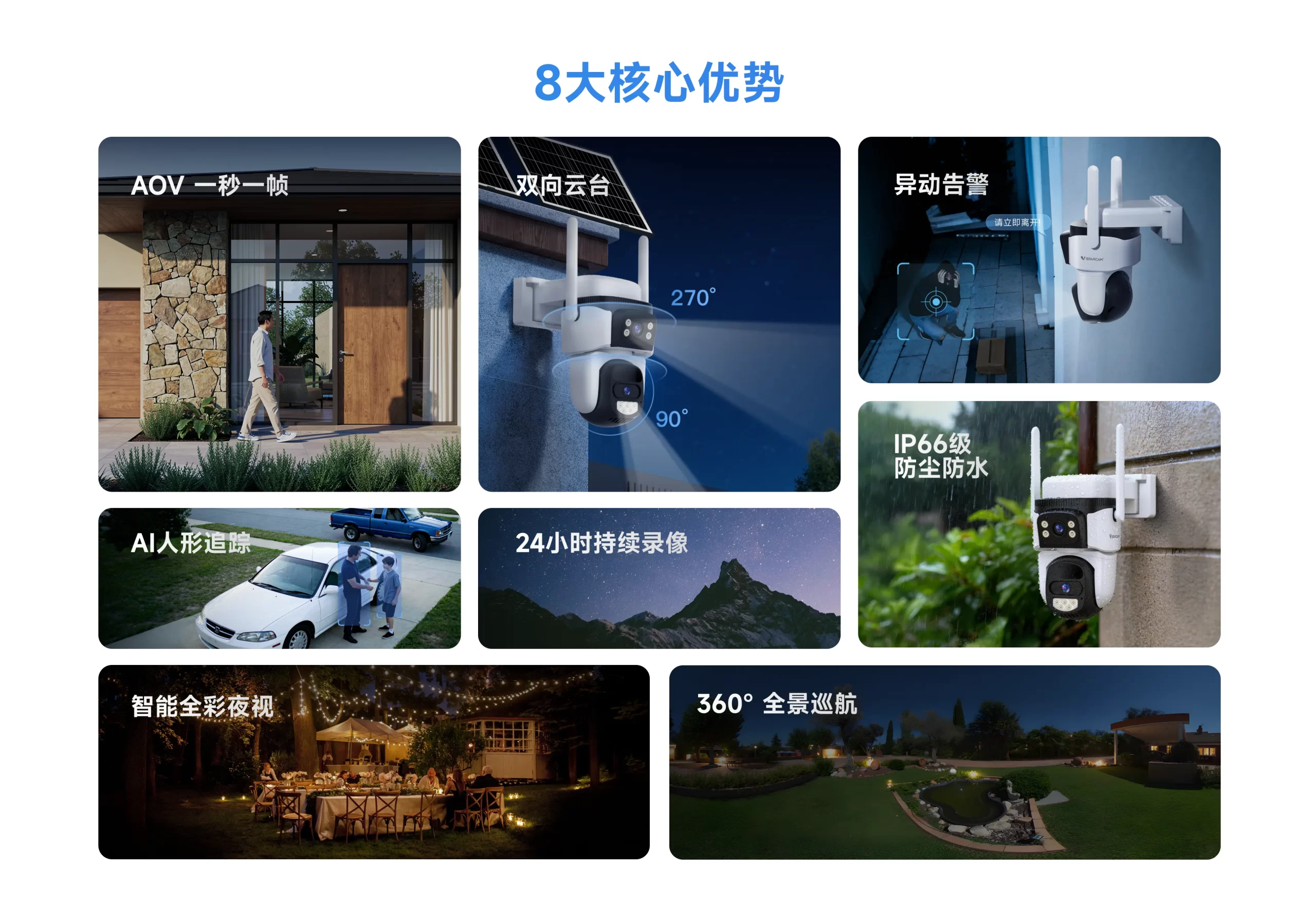 | 臻全彩夜视+黑白夜视,双光灯珠立体矩阵补光,全彩更清晰,夜视更明亮 |
