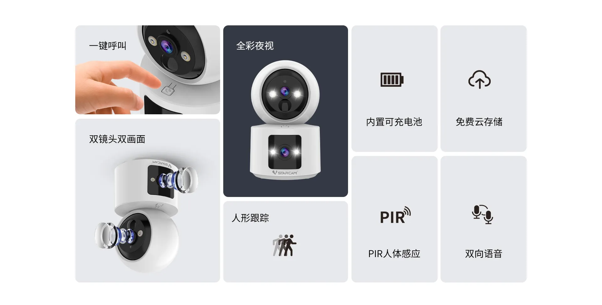 | 视频 | 夜视 | 全彩夜视,双光源,球头2红外+2白光灯,枪2红外+2白光灯 |