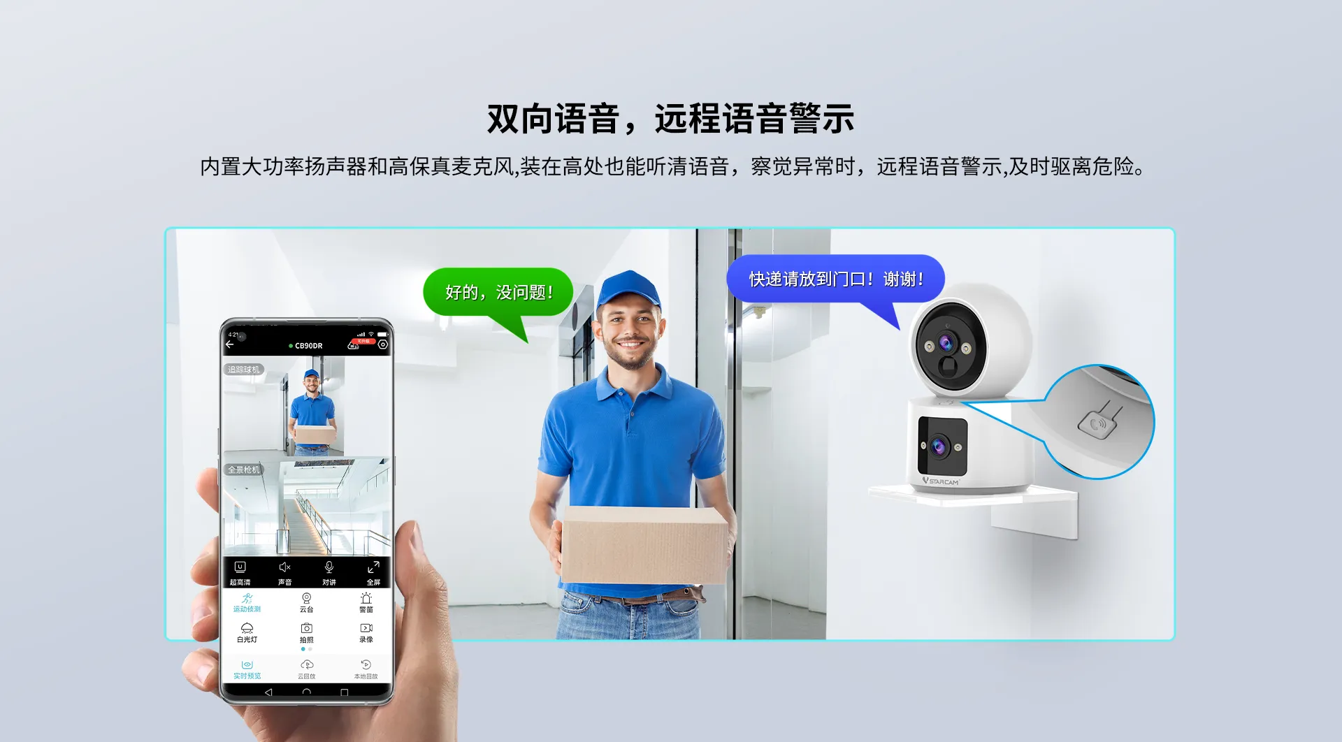 | ✮远程主动唤醒,双向语音对讲 | ||