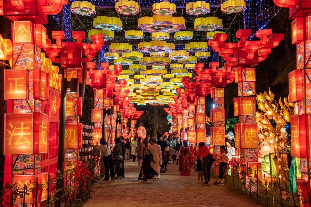 街头巷尾悬挂灯笼、彩灯