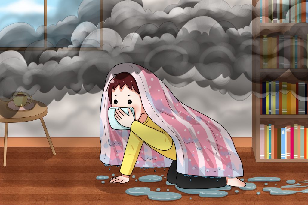 家中一旦起火,别惊慌失措,若火势小,应迅速利用备用简易灭火器材灭火。