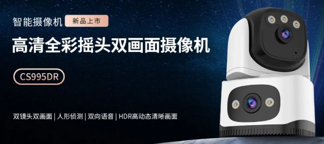 CS995DR双镜头摄像机:180°广角覆盖门口和走廊两不个同区域,手机华体会全站APP同时呈现两个区域的高清画面。