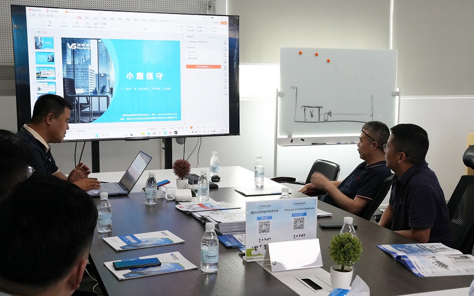 在考察过程中,瑞金市副市长黄发亮一行考察团参观了小鹰视界的展厅,小鹰视界的王经理介绍了包含企业核心技术成果和自主研发的”小鹰值守远程接警华体会全站app官网平台”、“火灾预警解决方案”、“城市消防远程监控系统”、”人工值守系统”等多项专利技术,已应用于全国多个安防项目。其中,小鹰哨兵智慧物联解决方案和终端设备协同监控方案,尤其引起考察团对智能安防领域技术应用的浓厚兴趣。