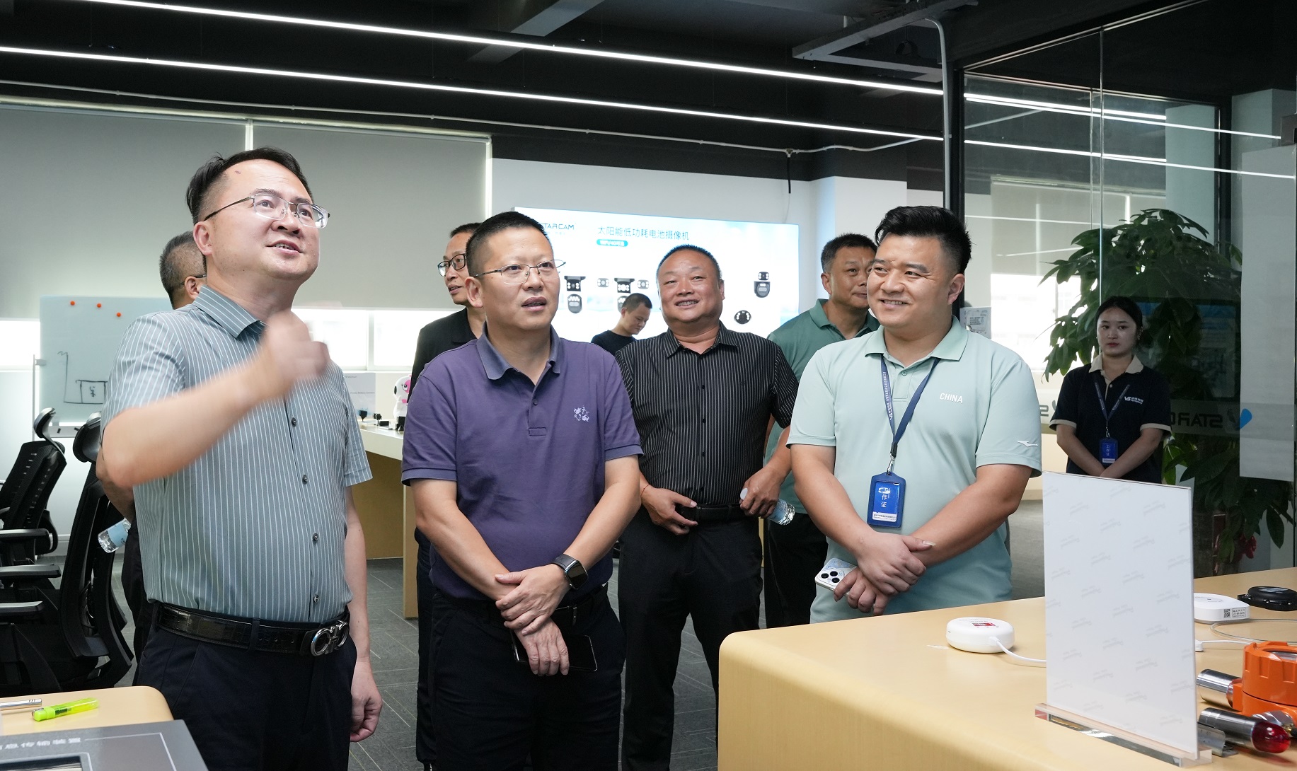 2025年7月15日,江西省瑞金市副市长黄发亮率队赴深圳市小鹰视界智能有限公司考察调研。作为瑞金市分管工业经济的市领导,黄发亮副市长此行重点观摩了小鹰视界集团的智能安防类产品生产线及消防类软硬件系统,小鹰视界集团旗下事业部王经理作了详细讲解,并与企业高层就数字经济与智能制造深度融合展开交流。