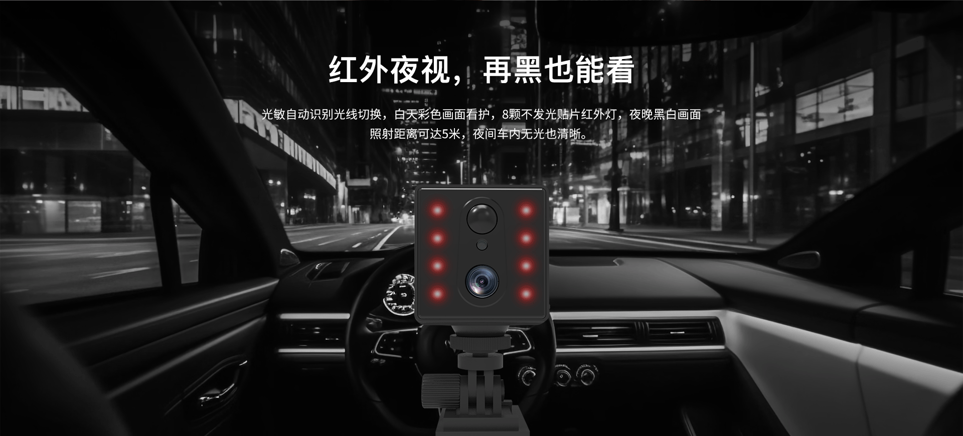 黑白夜视,光敏自动识别光线切换,8颗940nm不发光贴片红外灯,照射距离3~5米 |