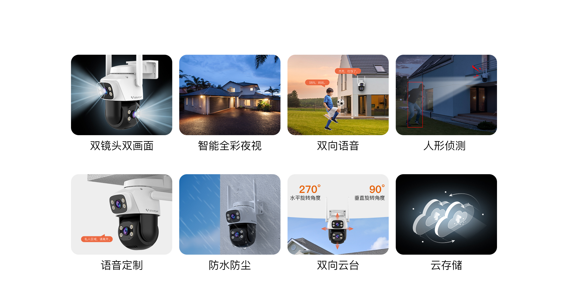 支持移动侦测,人形侦测,人形框定,区域侦测,警笛声报警 |