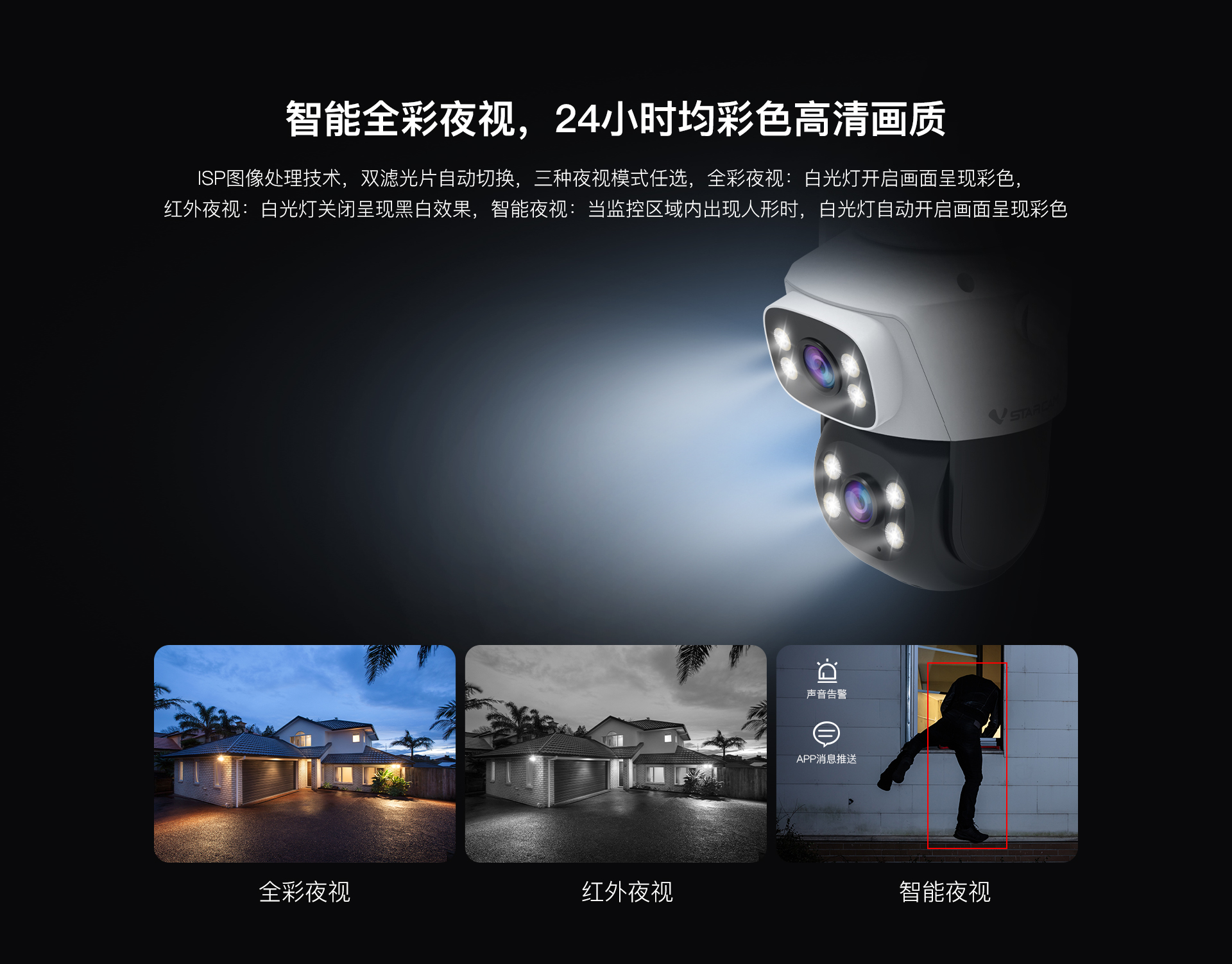 ✮双芯灯板,支持全彩夜视 |