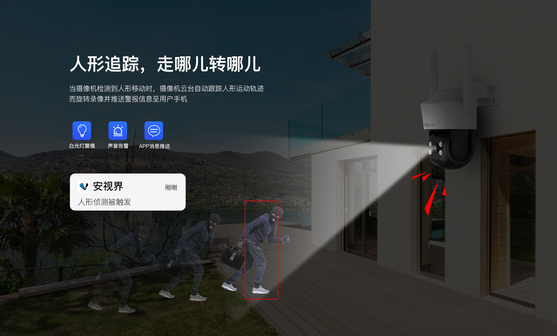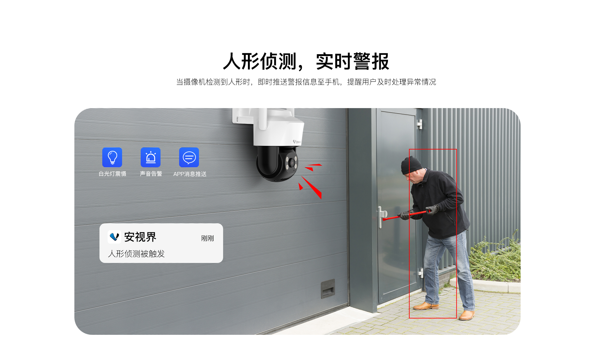 | 报警 | 报警检测 | 支持移动侦测,人形侦测,人形框定,区域侦测,警笛声报警 |