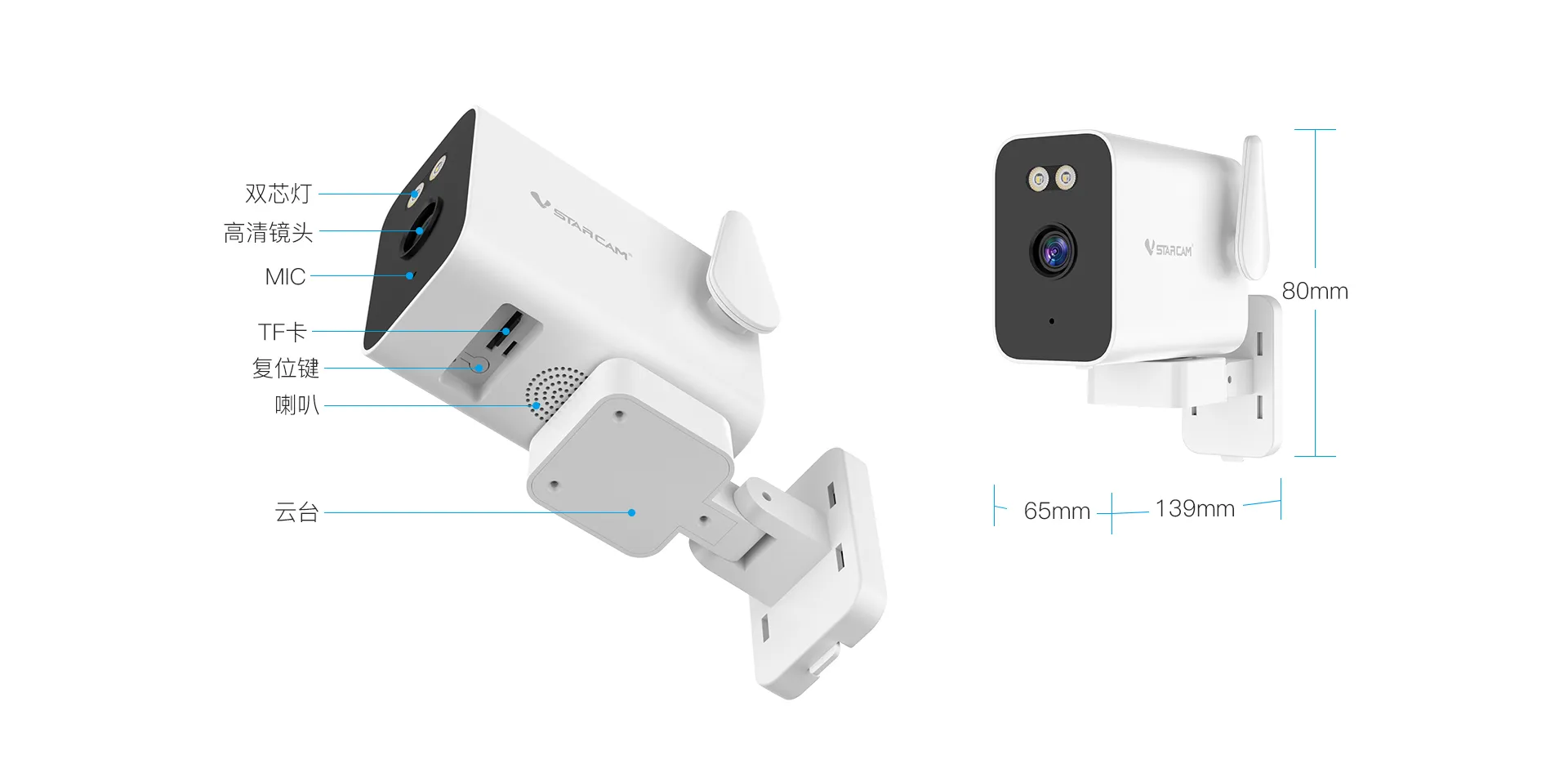 支持移动侦测,人形侦测,人形框定,区域侦测,人形追踪 |