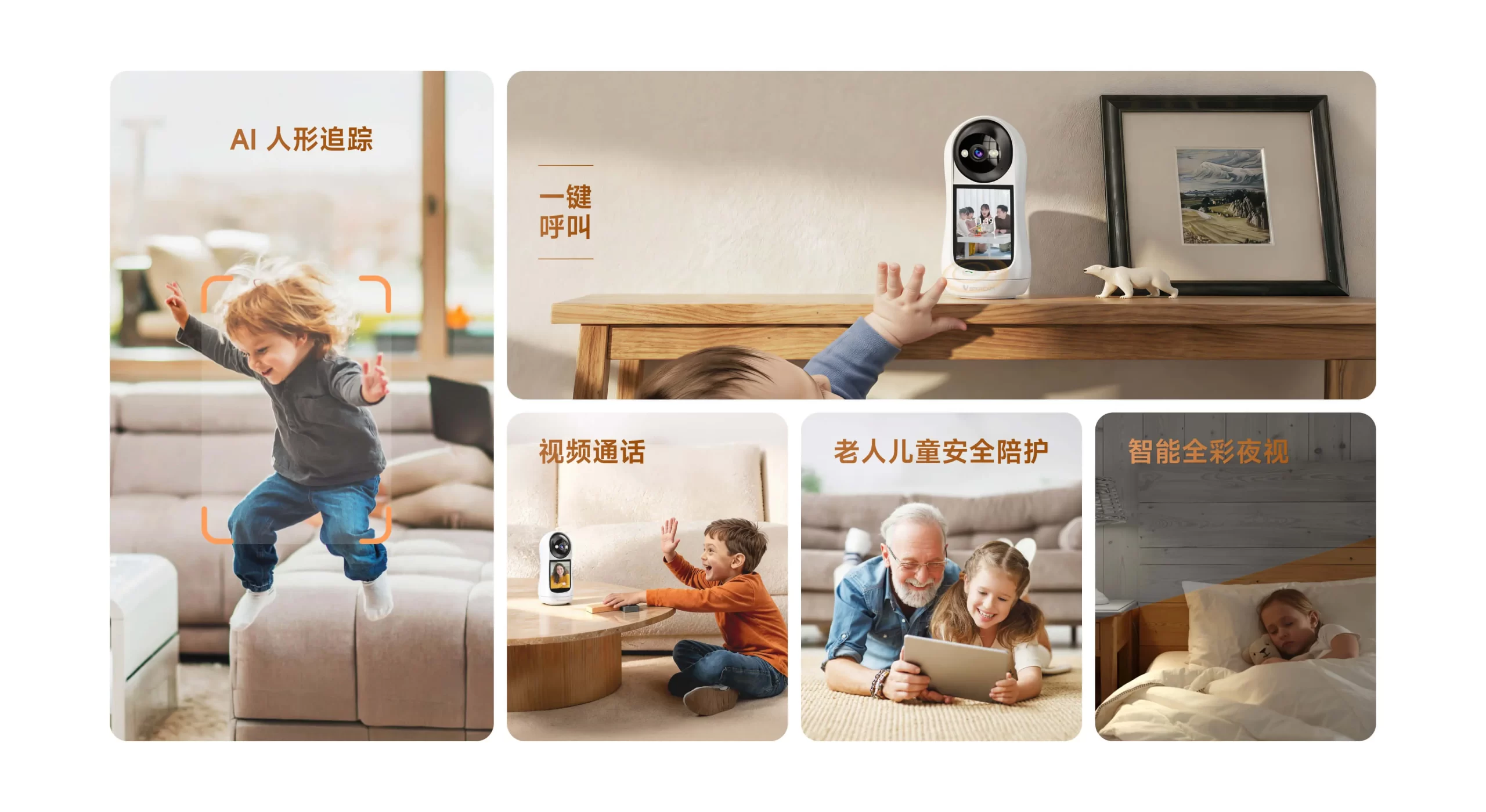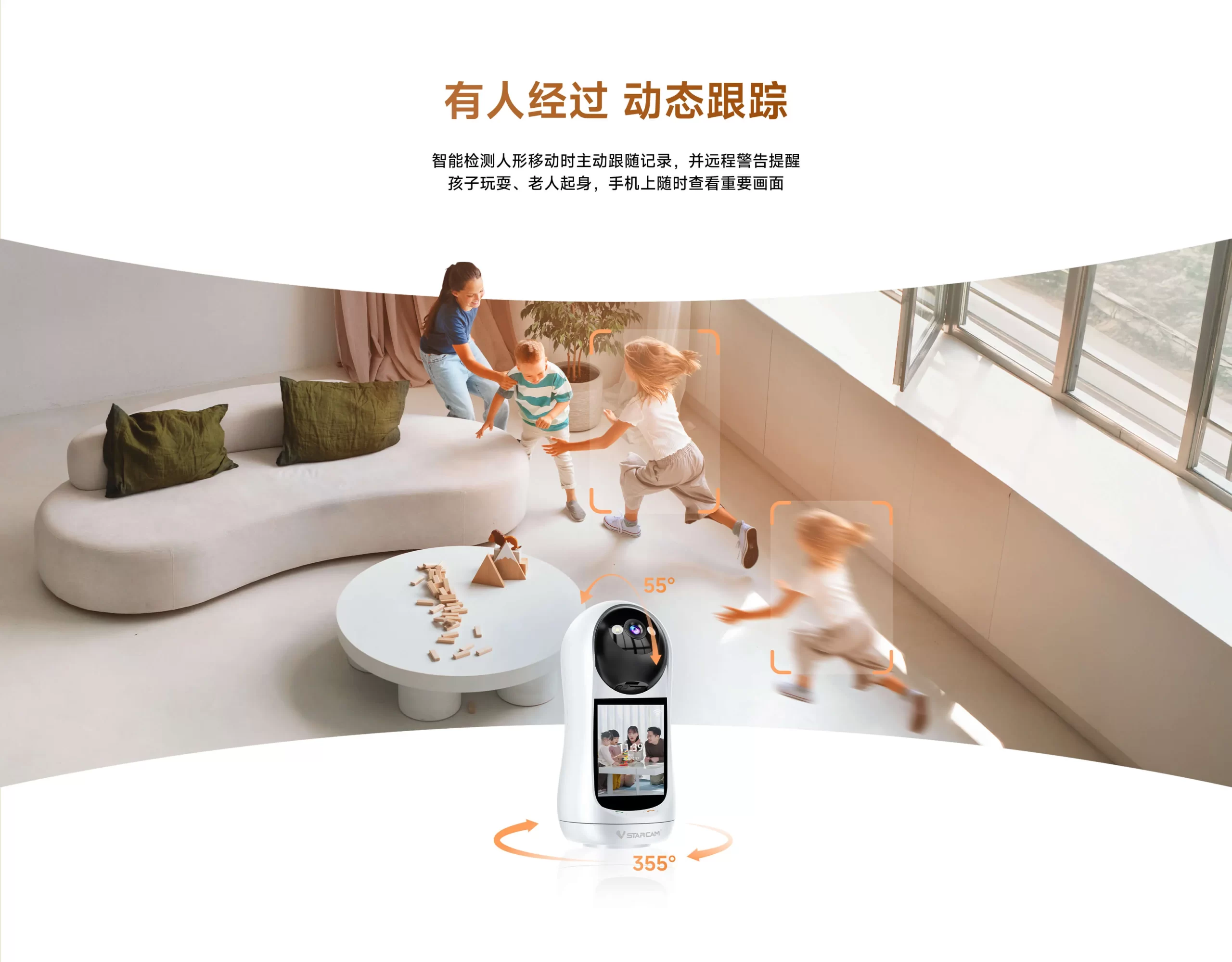 支持移动侦测,人形侦测,人形框定,区域侦测,人形追踪 |