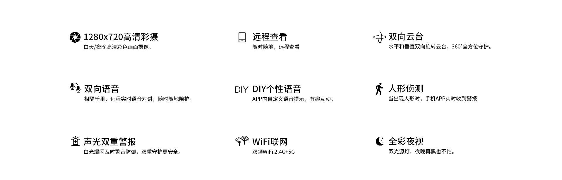 支持移动侦测,人形侦测,人形框定,区域侦测,人形追踪 |