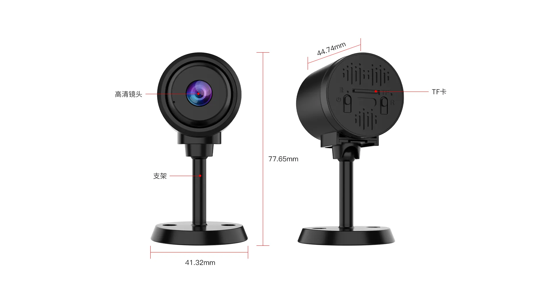 黑白夜视,软光敏自动切换,4颗940nm不发光贴片红外灯,照射距离3~5米 |