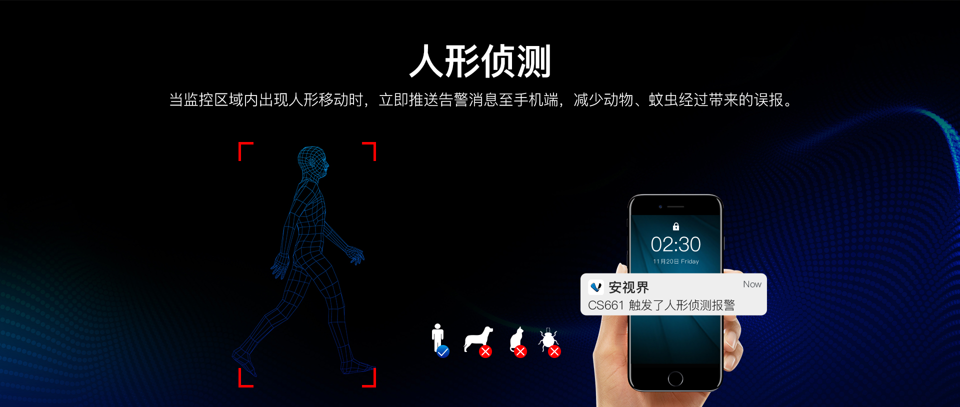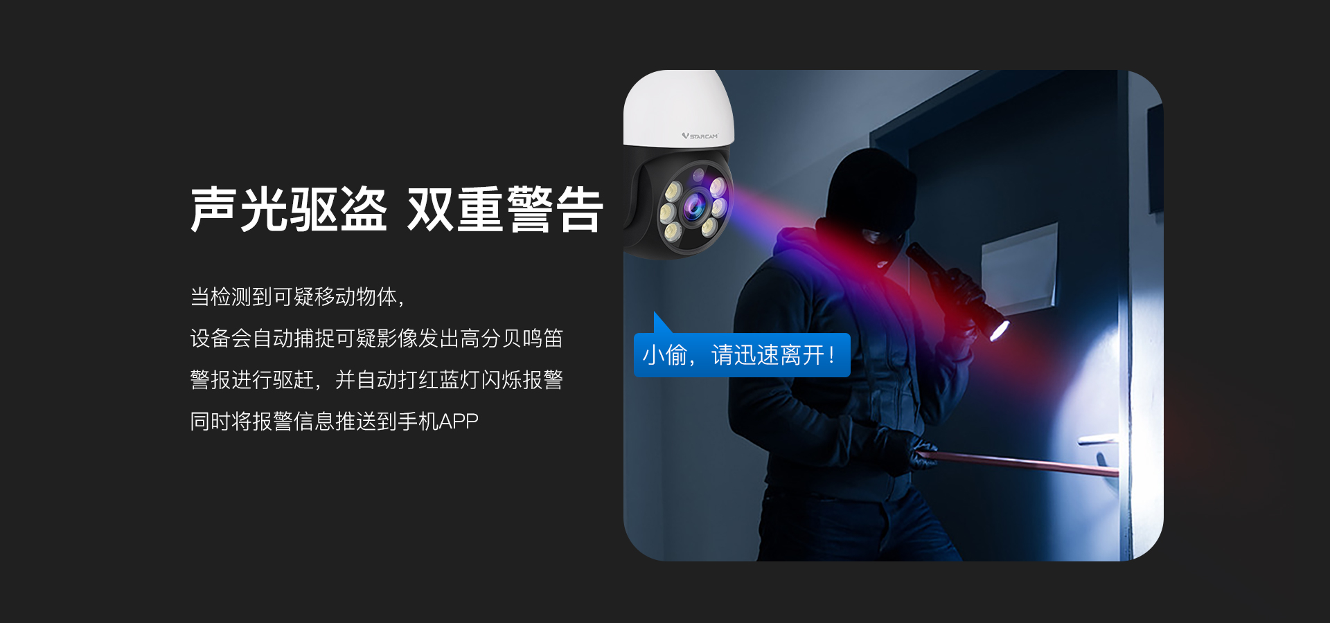 | ✮人体移动智能侦测,智能报警推送,红蓝警示灯告警 | ||