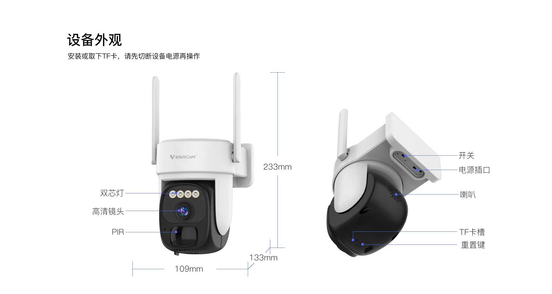 全彩夜视,双光源,4颗双色双光源 |